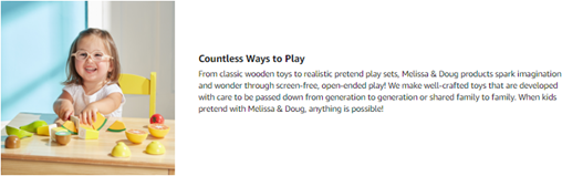 From classic wooden toys to crafts, pretend play, and games, Melissa & Doug products provide a launch pad to ignite imagination and a sense of wonder in all children so they can discover themselves, their passions, and their purpose.Since the company’s founding more than 25 years ago, Melissa & Doug has consistently delivered innovative products that inspire open-ended thinking, encourage kids to see new possibilities, and offer Countless Ways to Play. It’s part of a bigger vision to Take Back Childhood. Because by giving children a true childhood with the space and freedom to explore their world, we give them a path to realizing their full potential!