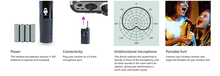 Become A Liberated Karaoke Singer Around With This Wireless Microphone. No Need To Hold On To A Wired Microphone Anymore. Free Up Your Performance To Take Full Advantage Of Your Stage Without Being Tethered Down. Plugs Into Any Ordinary Microphone Jack.