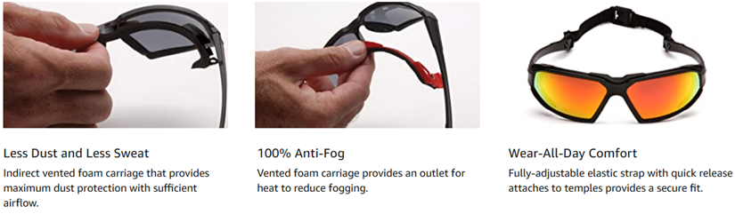 Pyramex Highlander Safety Eyewear, Black Frame/Clear Anti-Fog Lens
