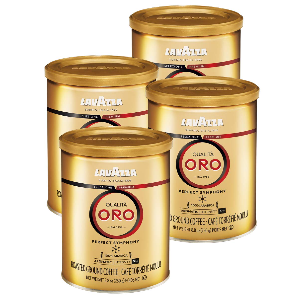 Four 8.8 ounce cans of Lavazza Qualita Oro Italian ground coffee