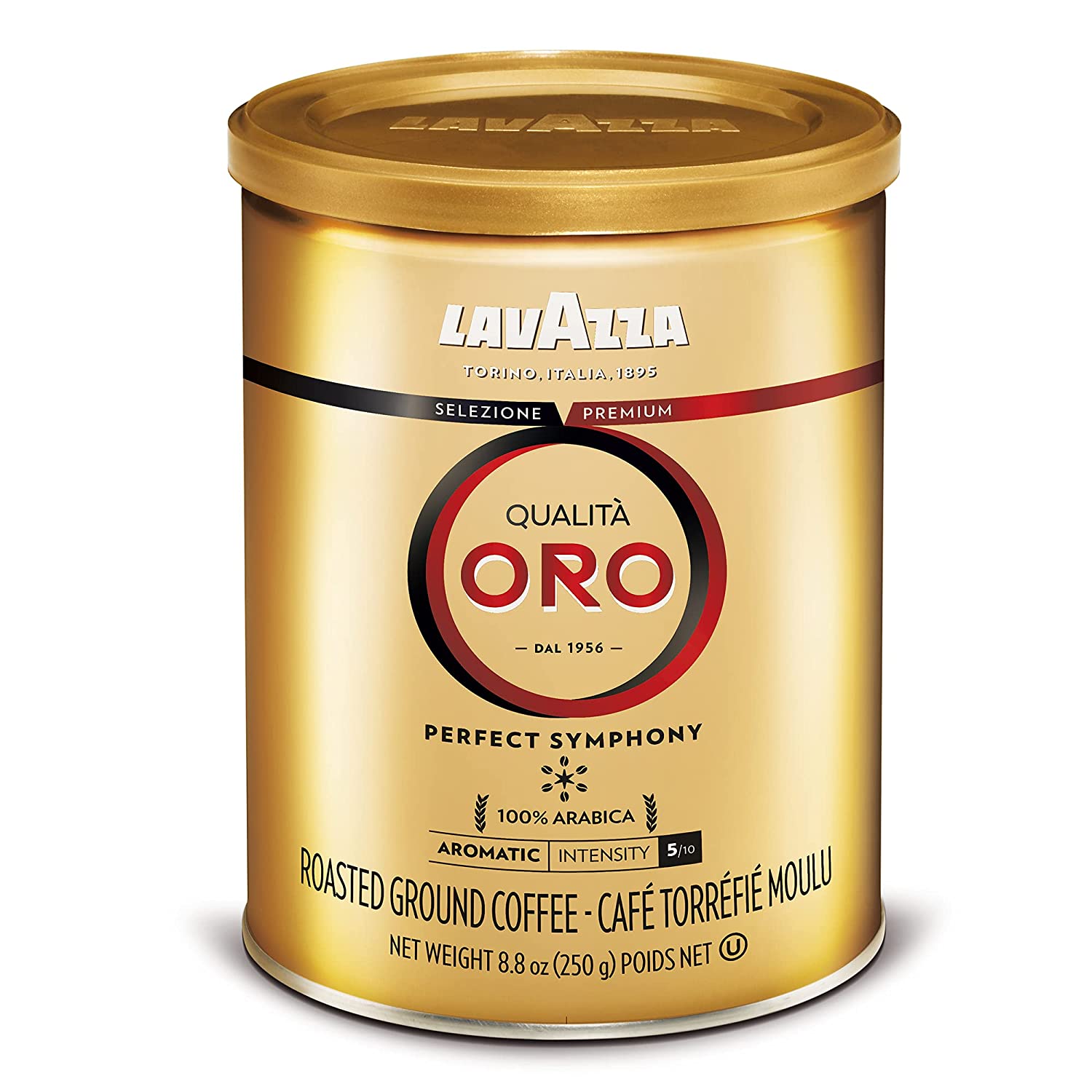 Lavazza Qualita Oro Ground Coffee Blend, Medium Roast, Authentic Italian, Blended And Roasted in Italy, Non GMO, A Full bodied with sweet, aromatic flavor, 8.8 Oz (Pack of 4)