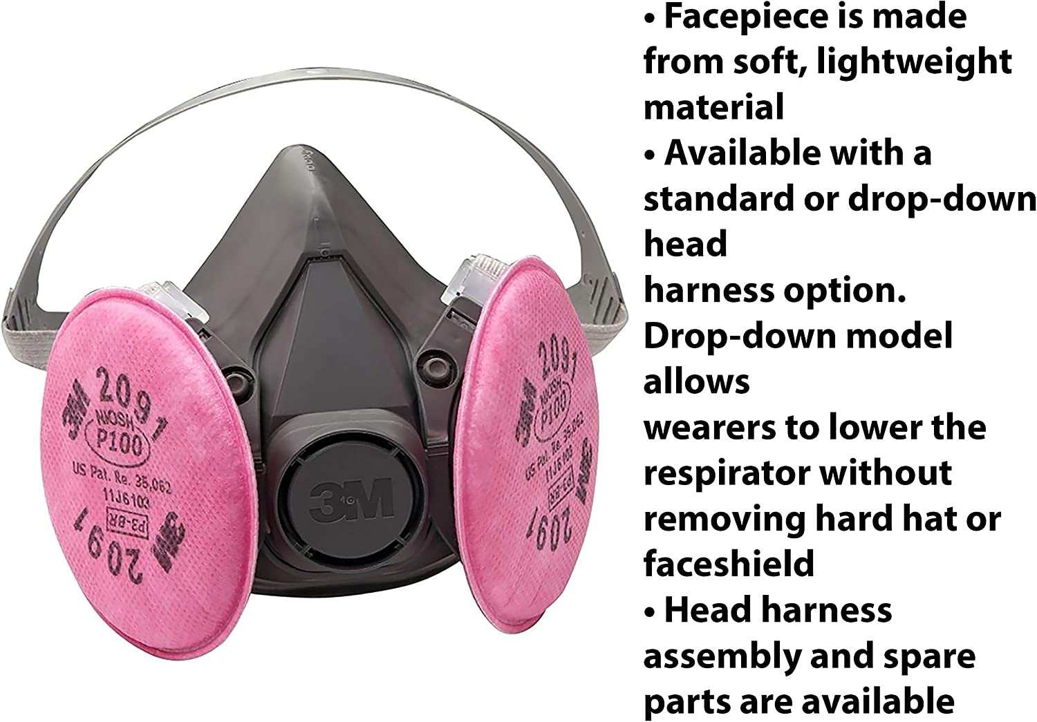 • Remarkably comfortable, soft, lightweight facepiece and easy-to-adjust head straps