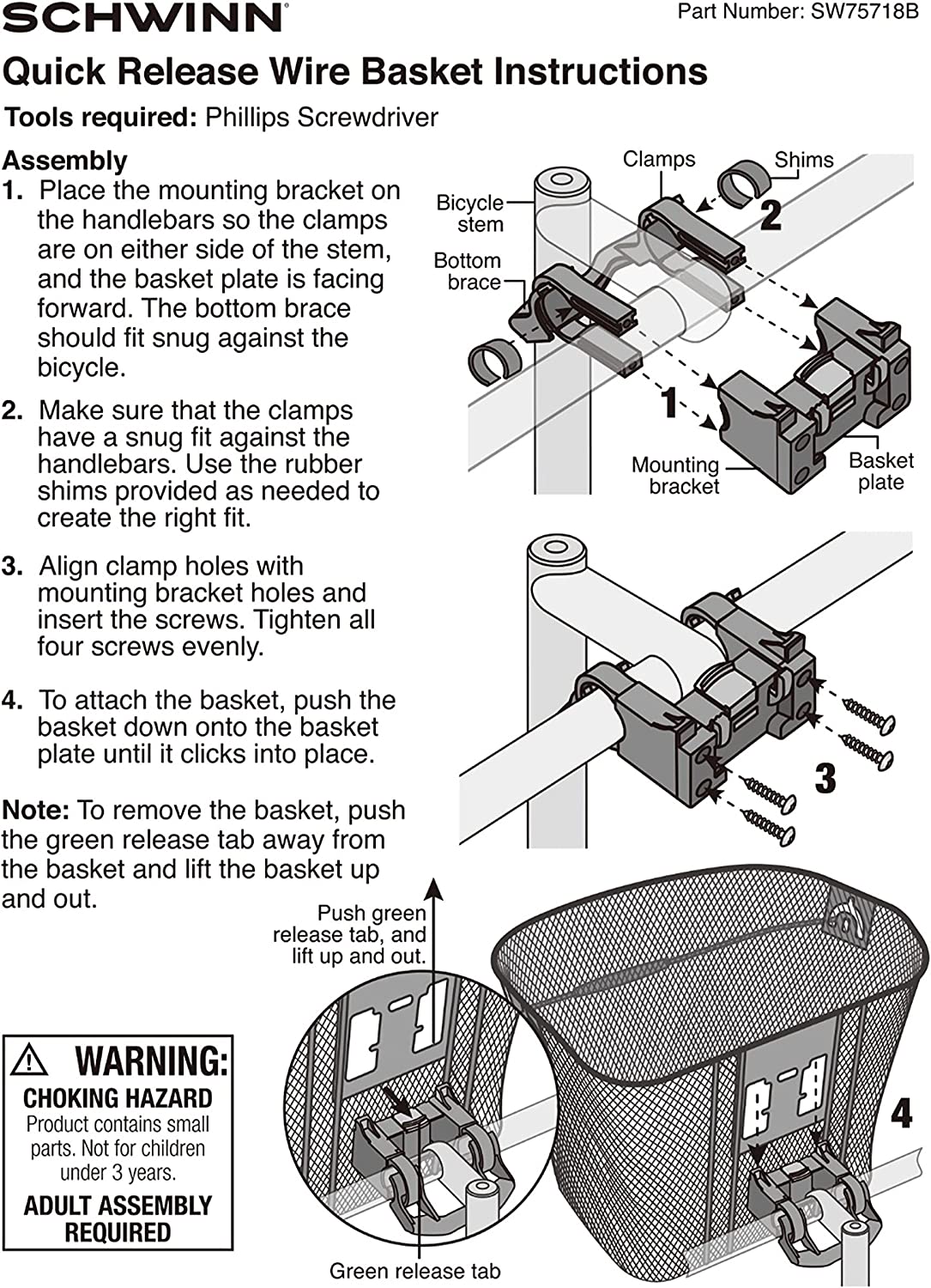 - Fits most adult bikes, Includes mounting hardware, assembly requires a Phillips screwdriver (not provided) , item dimensions 14 x 10.6 x 10.5 inches