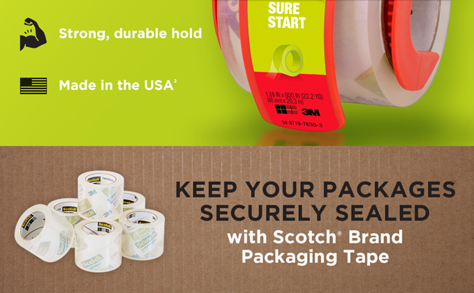When you’re in the middle of packing boxes, the last thing you want to do is search endlessly for the end of the tape. The search is over with Scotch® Sure Start Packaging Tape. This tough, strong tape comes off the roll easily and smoothly with no slivering or splitting, so you can skip the frustration and get to taping faster. This tape also delivers a whisper quiet unwind, which makes it ideal for use in an office or home setting where quiet is critical. Never lose the tape end again, and when it quietly unwinds off the roll and is applied to your package, it stays on—keeping your package securely sealed. Clear to the core, Scotch® Sure Start Packaging Tape stands up to rough handling—but is so easy to handle. Scotch® Sure Start Shipping Packaging Tape—stress free, always ready to roll to help you get the job done.