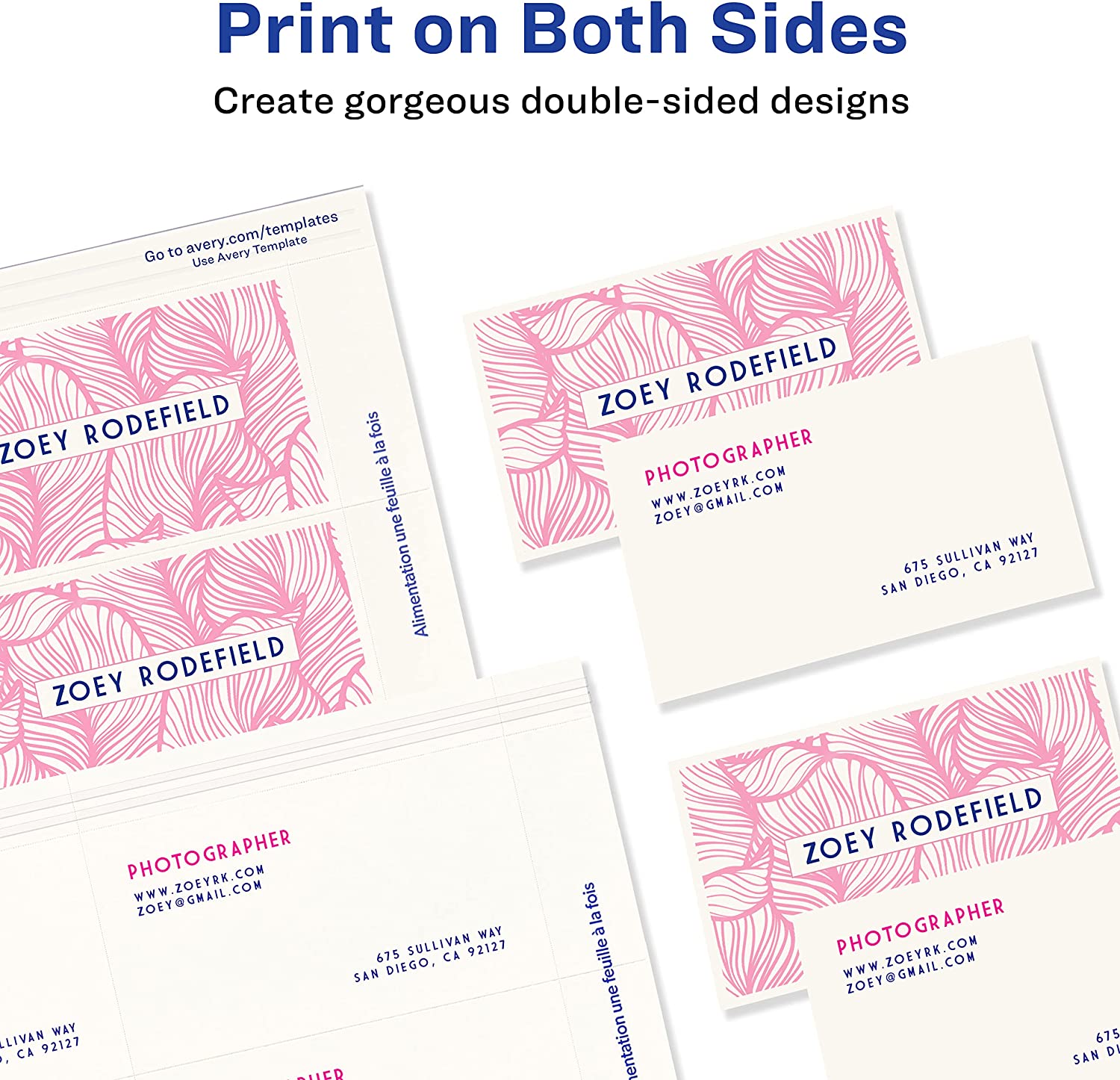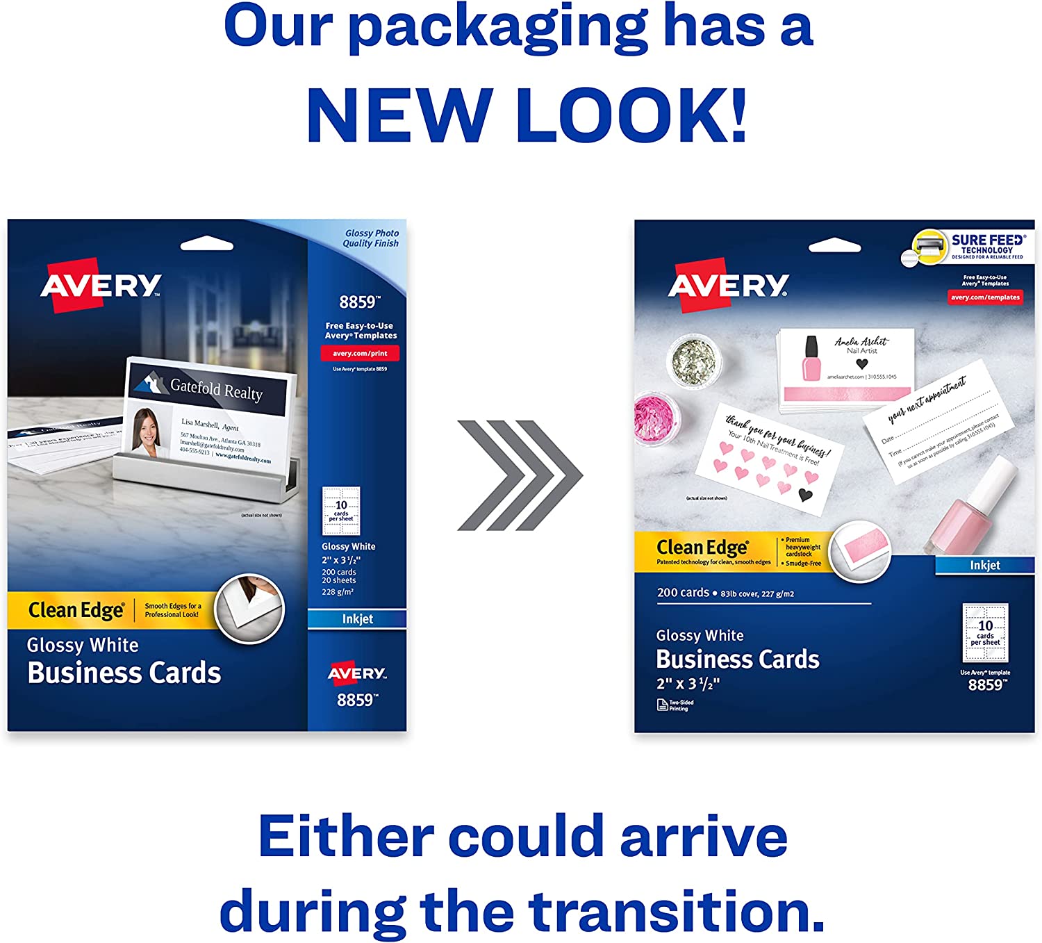 Avery Clean Edge Printable Business Cards with Sure Feed Technology, 2" x 3.5", Glossy White, 200 Blank Cards for Inkjet Printers (8859)