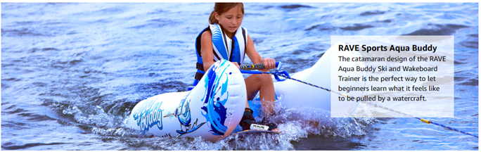 - LEARN TO SKI WITH EASE: Learning to water ski or wakeboard has never been easier! The RAVE Sports Aqua Buddy inflatable trainer is a unique tool that has helped hundreds of kids and adults.