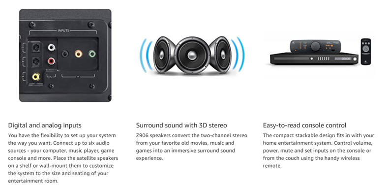 - Flexible setup: Connect upto six devices : Computer, music player, TV, game console and more; Infared remote