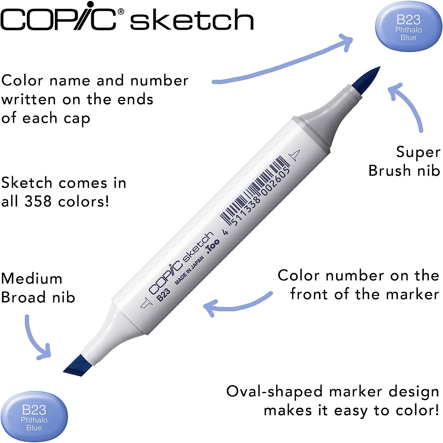 Copic Sketch is an ultra-blendable marker made with fast-drying, non-toxic, premium quality alcohol-based dye ink.