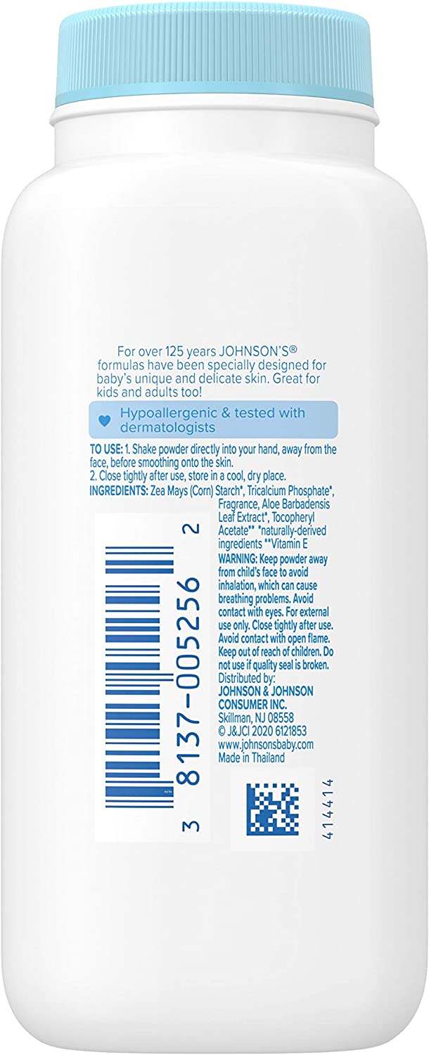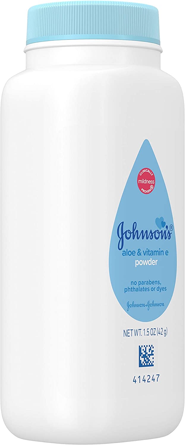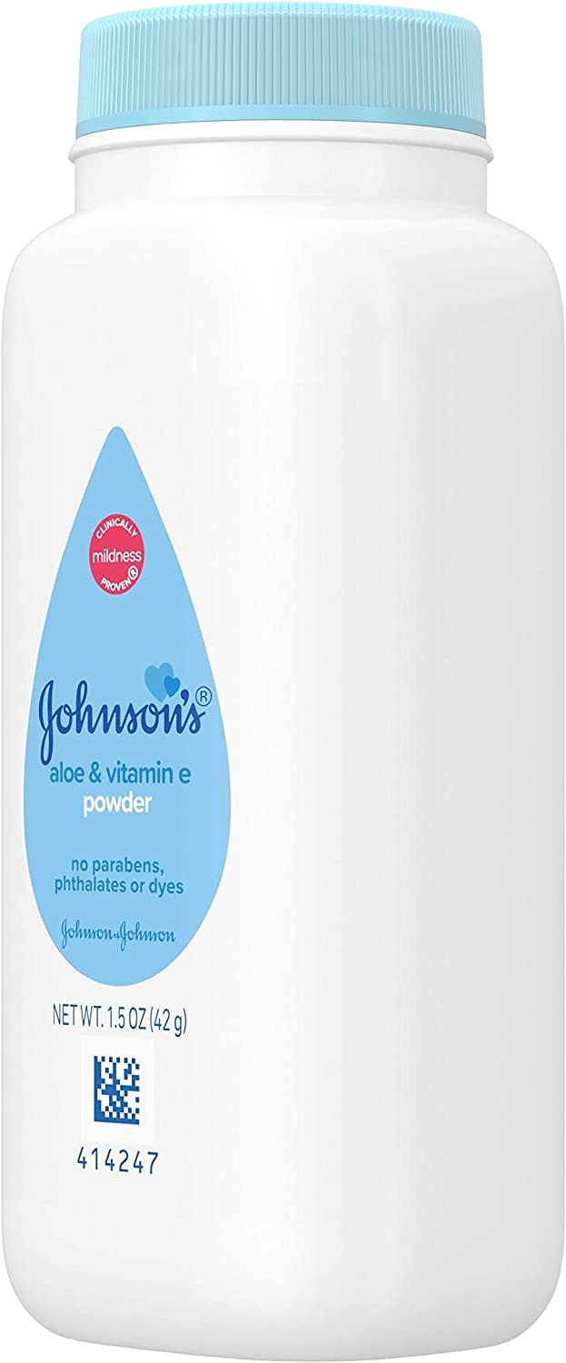 • 1.5-ounces of Johnson's baby powder with naturally derived cornstarch, aloe, and vitamin E provides a gentle way to soothe your baby's skin and leave it feeling soft and smooth