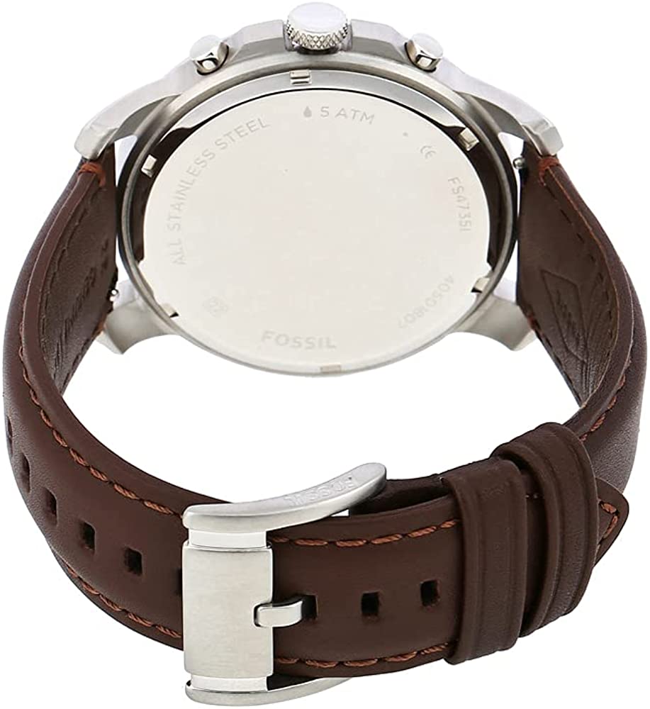 - Stainless steel case with cream sunray dial and green; genuine brown leather band with adjustable buckle closure; interchangeable with all 22mm Fossil watch straps