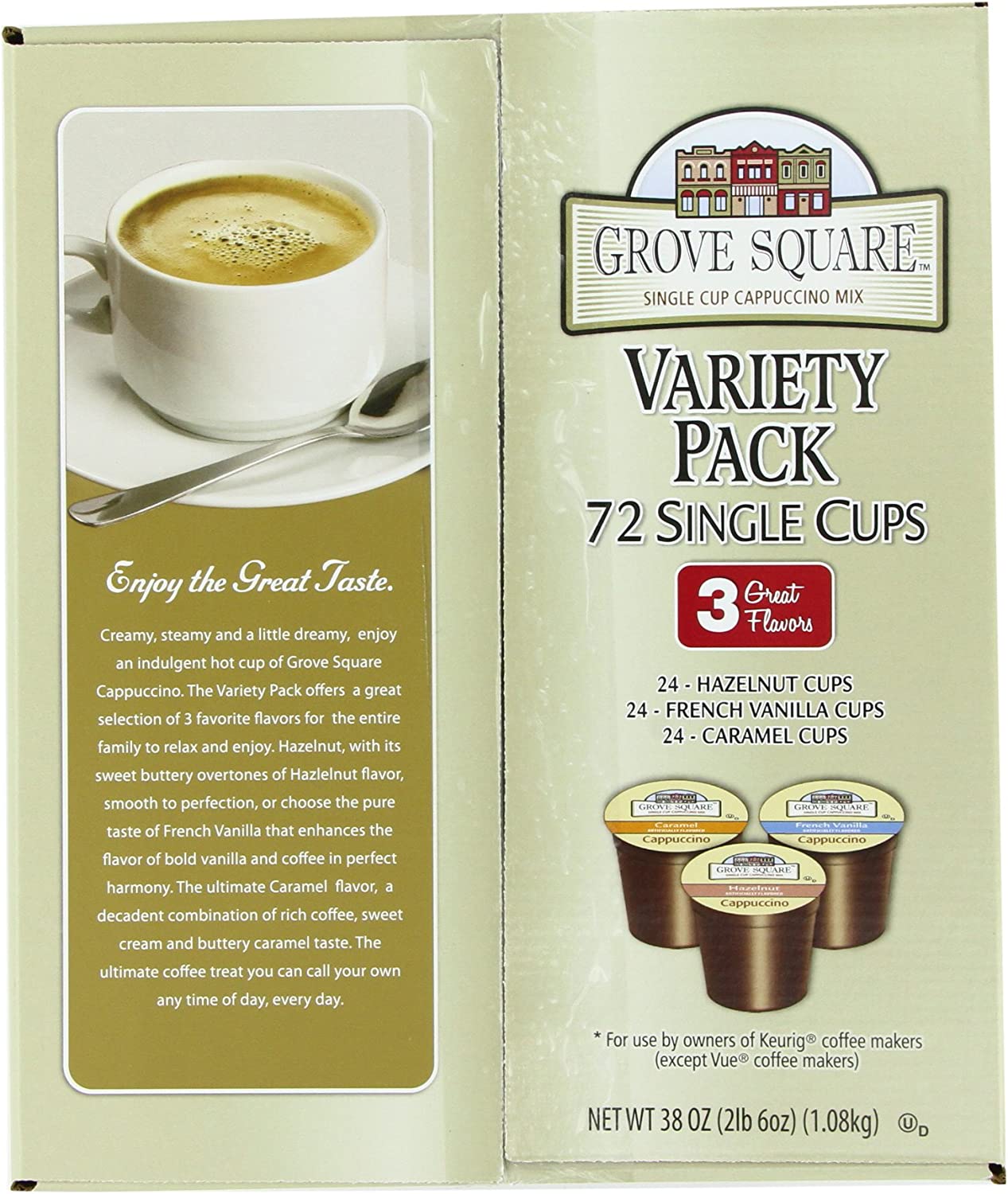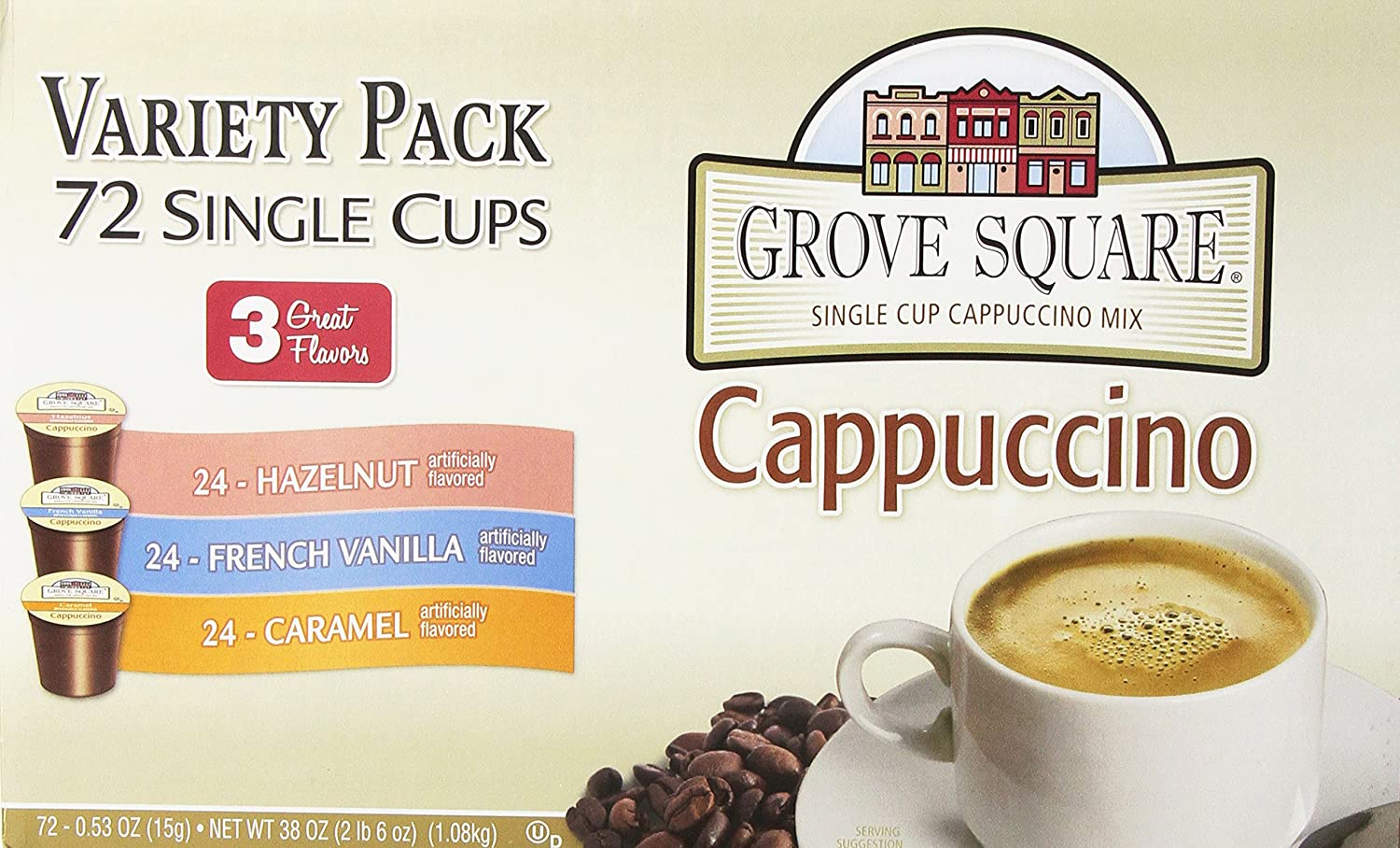 Grove Square Cappuccino Pods, Variety, Single Serve (Pack of 72)