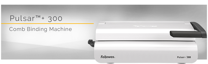 The full-featured, medium duty Fellowes Pulsar Plus Comb Binding Machine is ideal for general office use. Compact machine manually punches up to 18 sheets at a time and binds up to 300 sheets with a 1-1/2-Inch comb. Vertical document loading ensures accurate punch alignment. Efficient design allows user to punch and bind in a continuous manner. Features built-in comb storage tray with document measurement device for added convenience and quick set-up. Adjustable edge guide centers documents with ease. Includes binding starter pack (contents: 10 pk assorted kit).