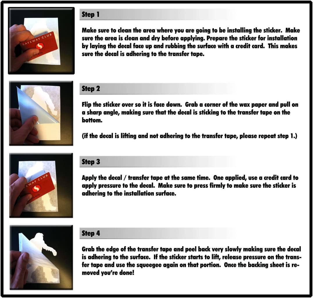 • Easy To Apply - - These vinyl stickers are self adhesive and easy to install. Just peel the wax paper from the backing sheet, lay the sticker flat on the surface you would like to install it on. Use a credit card or squeegee to apply pressure then remove the backing sheet slowly.