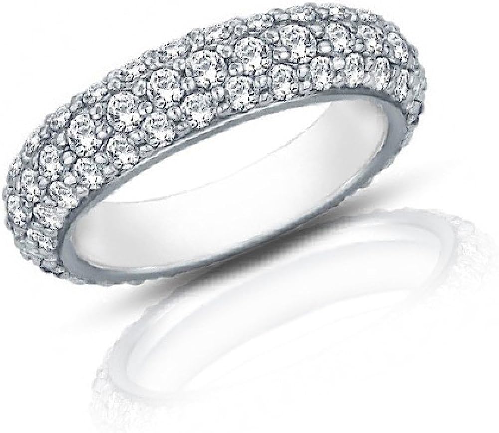 Madina Jewelry 3.50 ct Ladies Three Row Diamond Eternity Wedding Band Ring in 14 kt White Gold