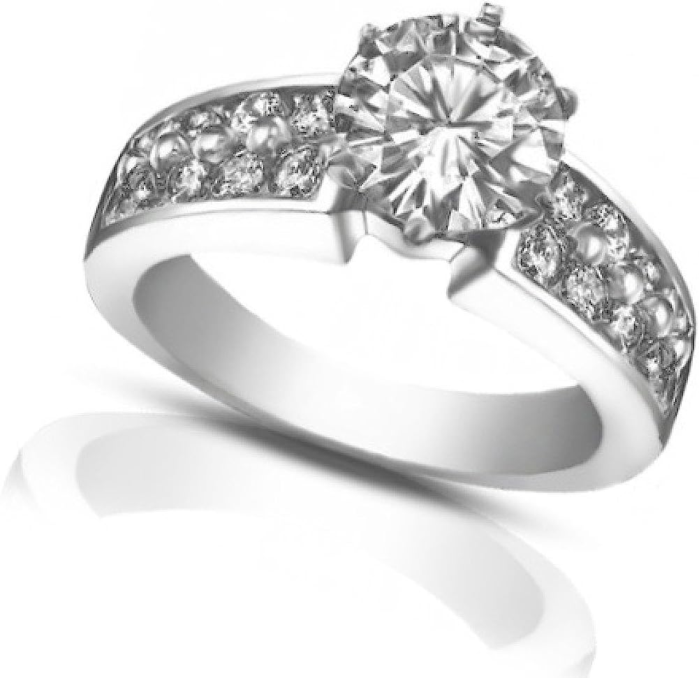 Madina Jewelry 2.00 ct Ladies Two Row Round Cut Diamond Engagement Ring in 14 kt White Gold