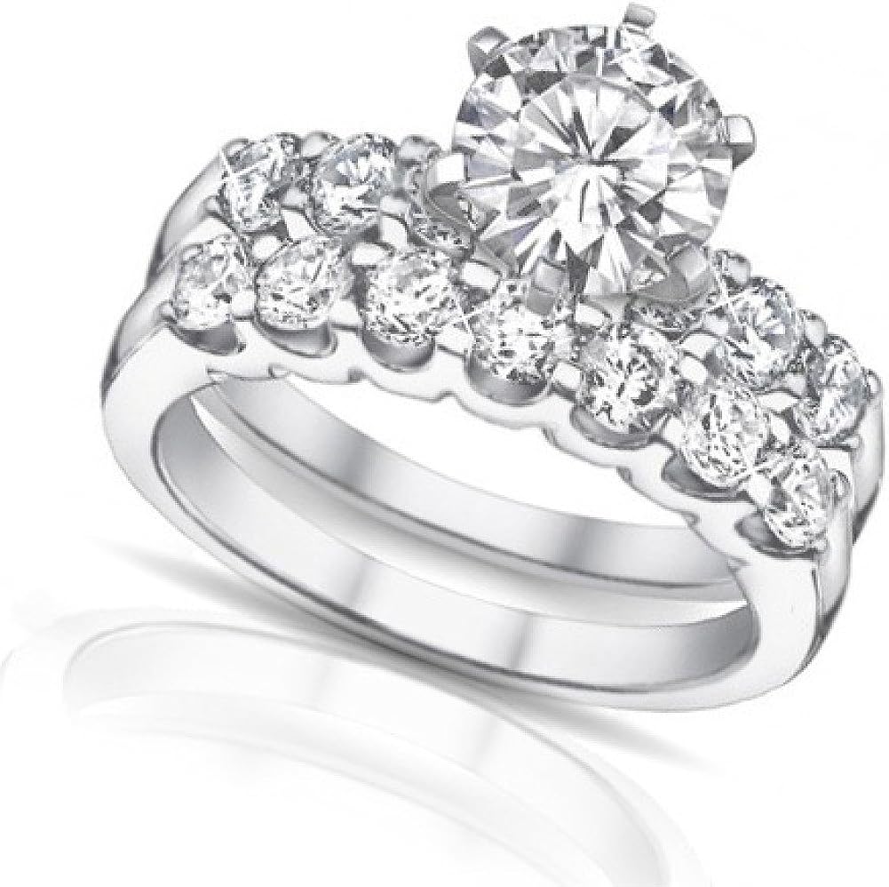 Madina Jewelry 2.05 ct Round Diamond Engagement Ring with Wedding Band in Platinum