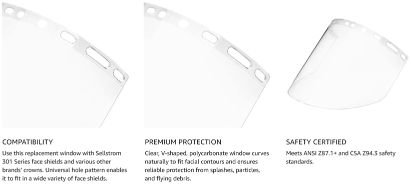• REPLACEMENT – Replacement window for Sellstrom 301 Series face shields and various other brand crowns