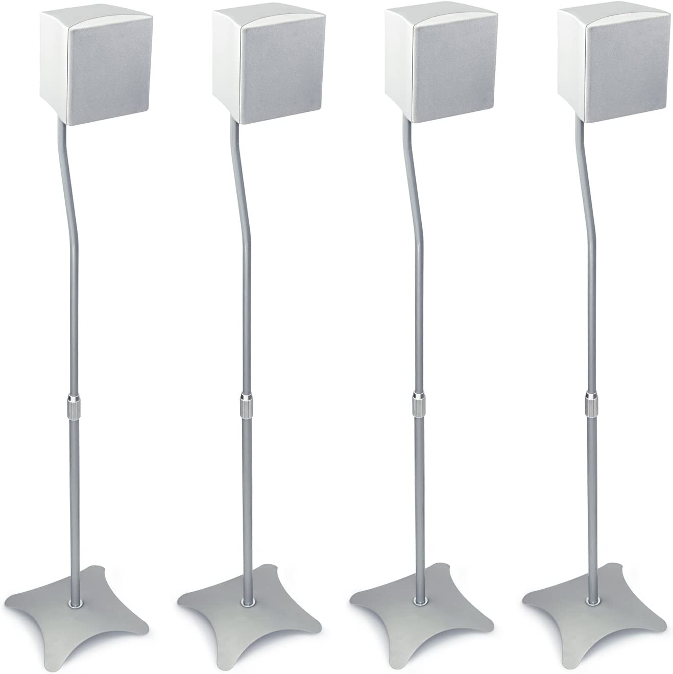 UNIVERSAL SPEAKER FLOOR MOUNTS - Premium and universal speaker stands (4 Stands) for home theater system satellite speakers. Ideal for front pair and rear pair positions for a 5-speaker setup.