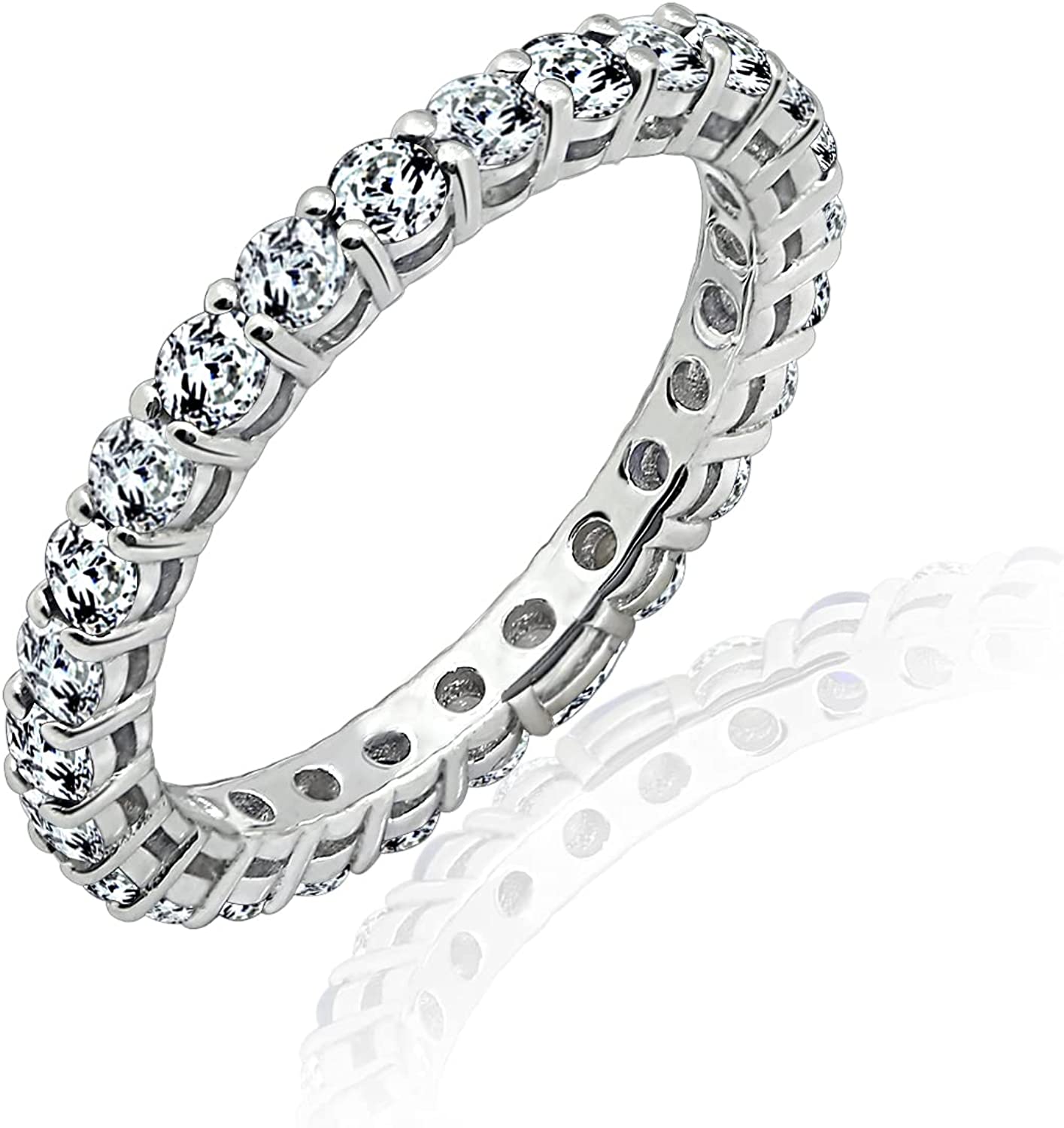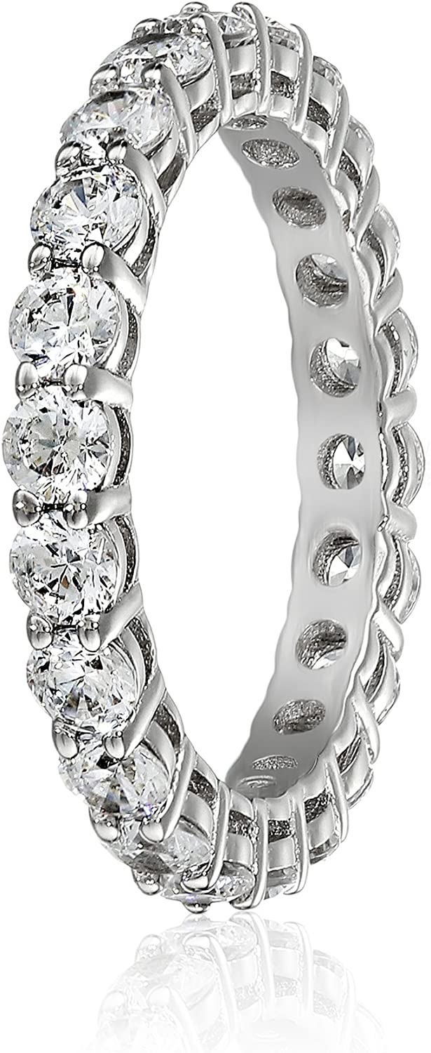 Argos Collection Platinum or Gold Plated Sterling Silver All-Around Band Ring set with Round Infinite Elements Zirconia