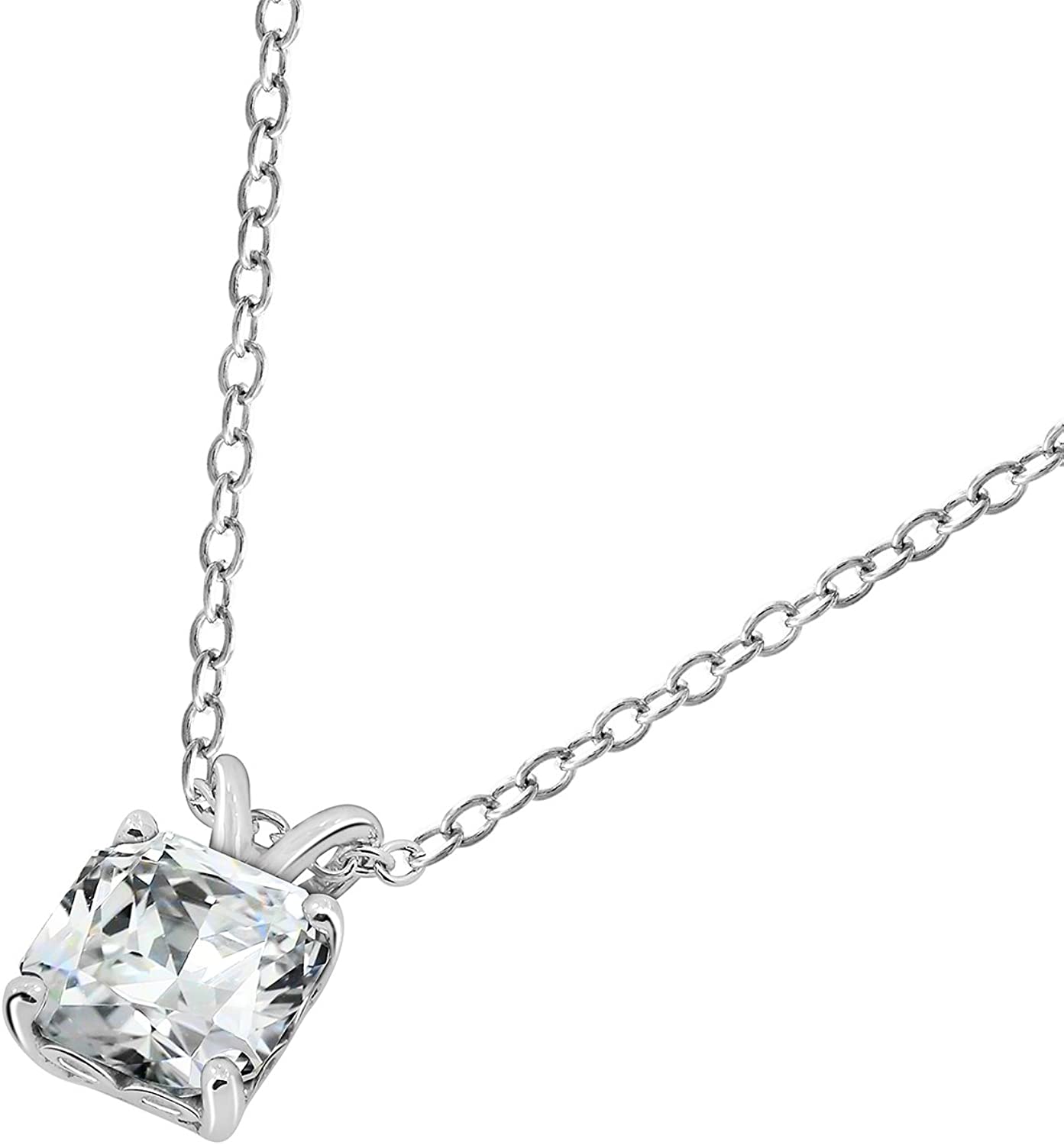 Argos Collection Platinum-Plated Sterling Silver Asscher-Cut Solitaire Pendant Neckalce made with Infinite Elements Cubic Zirconia
