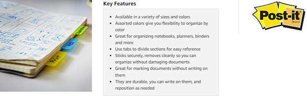 Post it Tabs in 1 inch size create necessary order by easily organizing planners and calendars into sections. Solid color bars give you flexibility to organize by color. Tabs are durable, you can write on them, and reposition as needed. They are also great for planners, binders and file folders. Tabs stick securely and remove cleanly. Aqua, Yellow, Pink and Violet. Contains 22 tabs/color and 88 tabs/on the go dispenser.