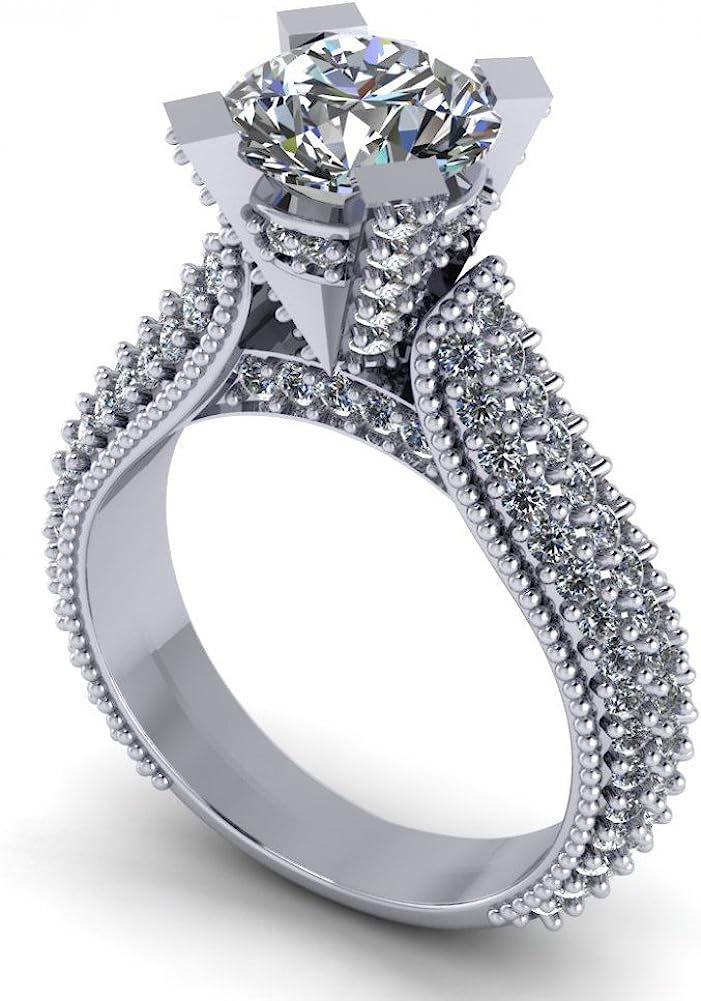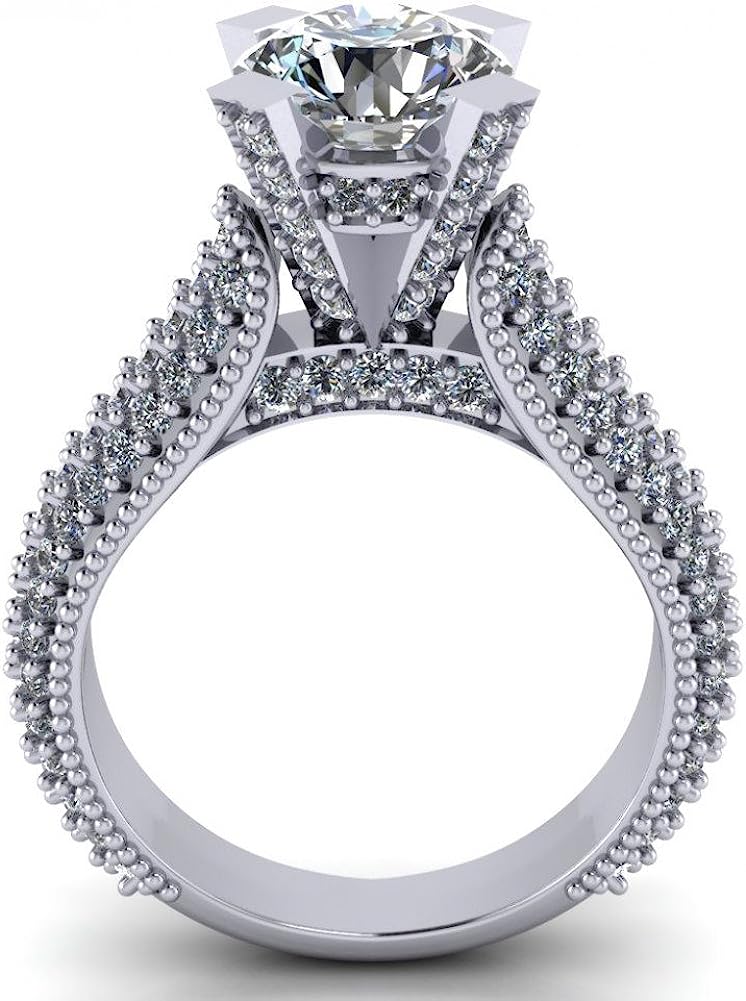 Madina Jewelry 2.65 ct Pave Set Round Cut Diamond Engagement Ring in 14 kt White Gold