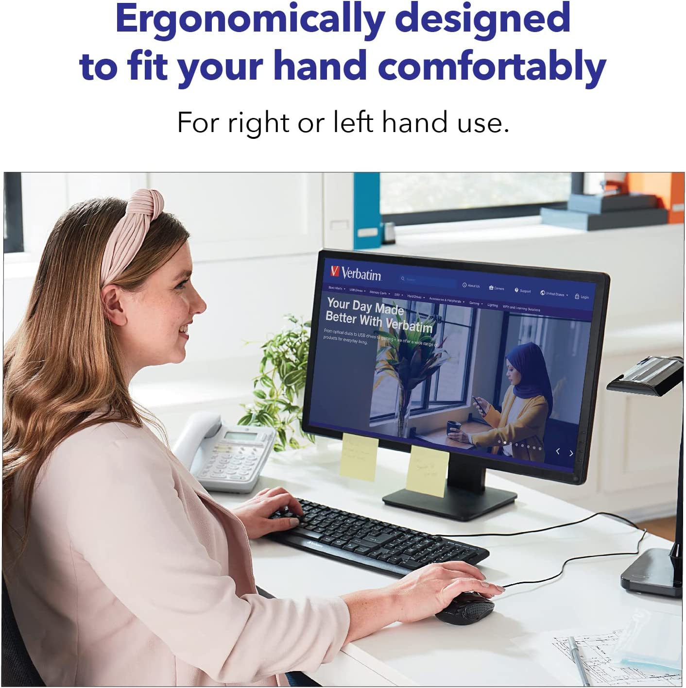 Verbatim Wired USB Computer Mouse - Corded USB Mouse for Laptops and PCs - Right or Left Hand Use, Black 98106