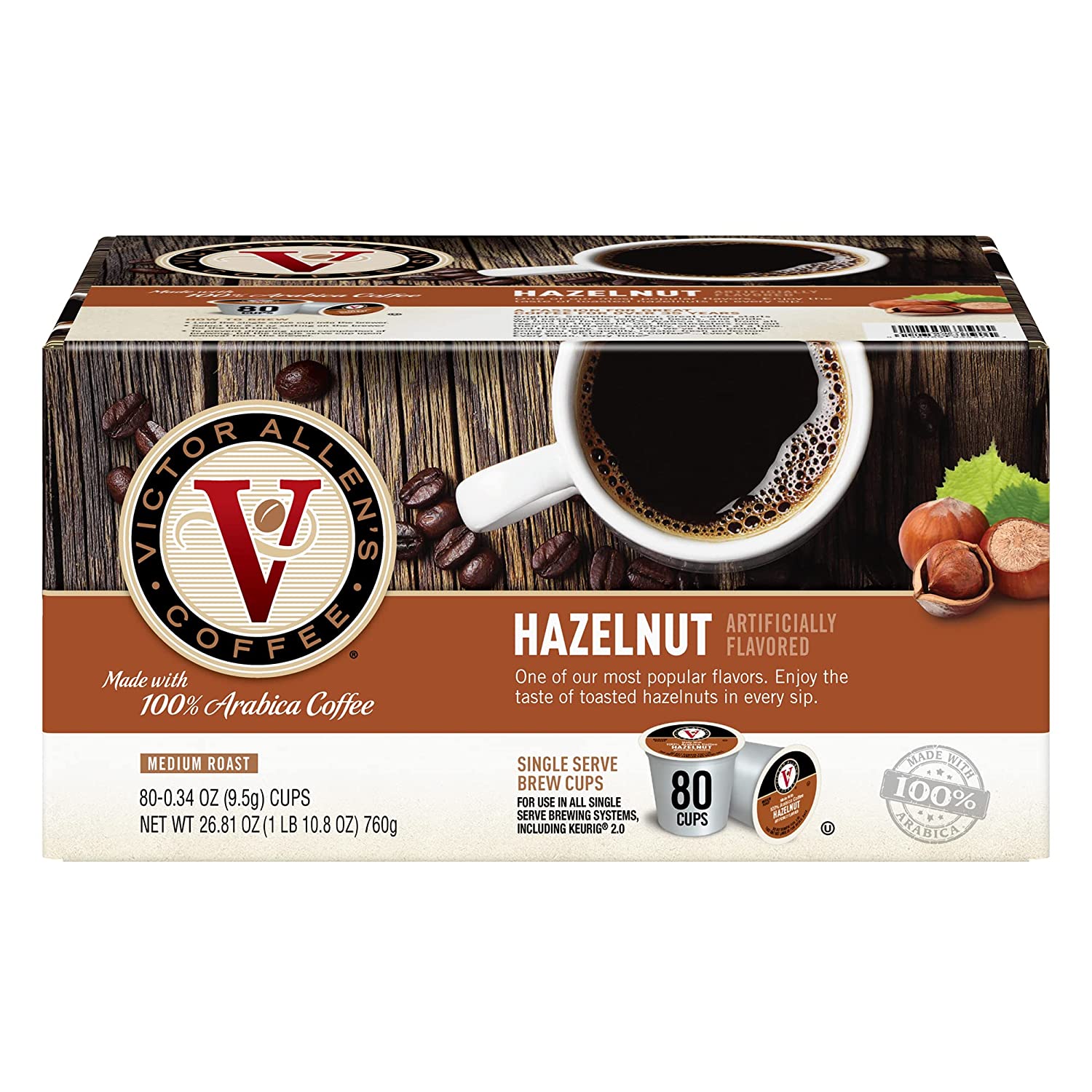 Victor Allen's Coffee Hazelnut Flavored, Medium Roast, 80 Count, Single Serve Coffee Pods for Keurig K-Cup Brewers