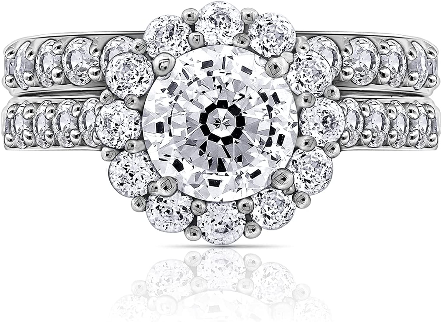 Flower halo ring, set with centerpiece and halo of Infinite Elements Cubic Zirconia