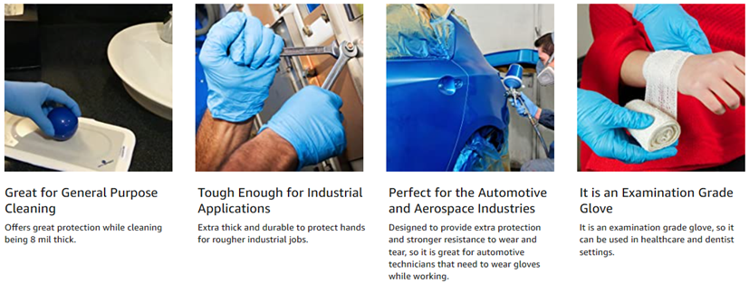• The glove fingers are double and almost triple in thickness when compare to other more commonly used nitrile exam gloves.
