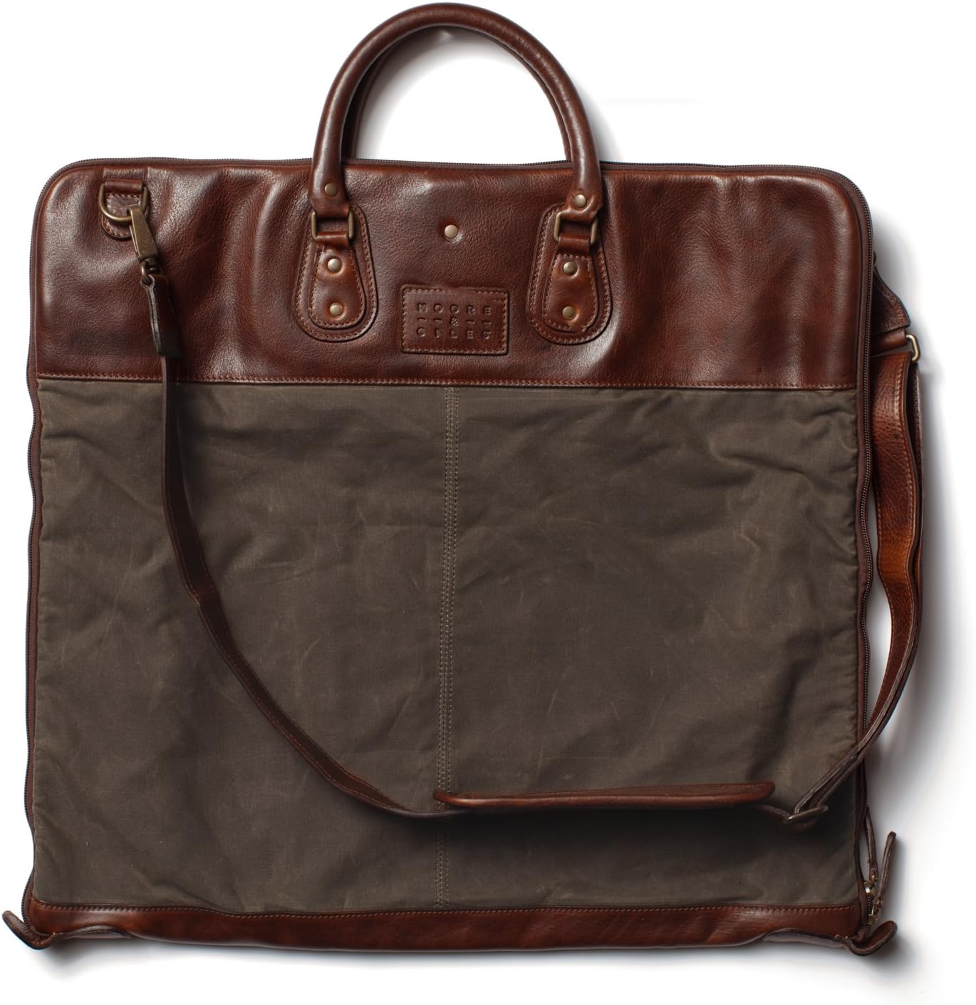 Moore & Giles Gravely Garment Bag Ventile Olive and Titan Milled Brown