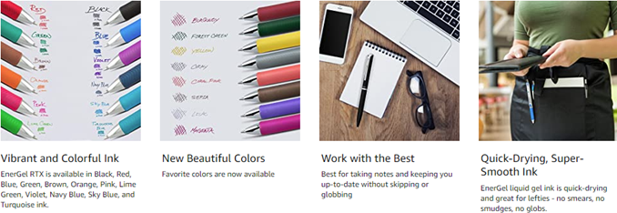 • EnerGel ink writes more smoothly than the leading brand* (*Internally tested to be smoother writing than the leading gel pen on standard writing paper)