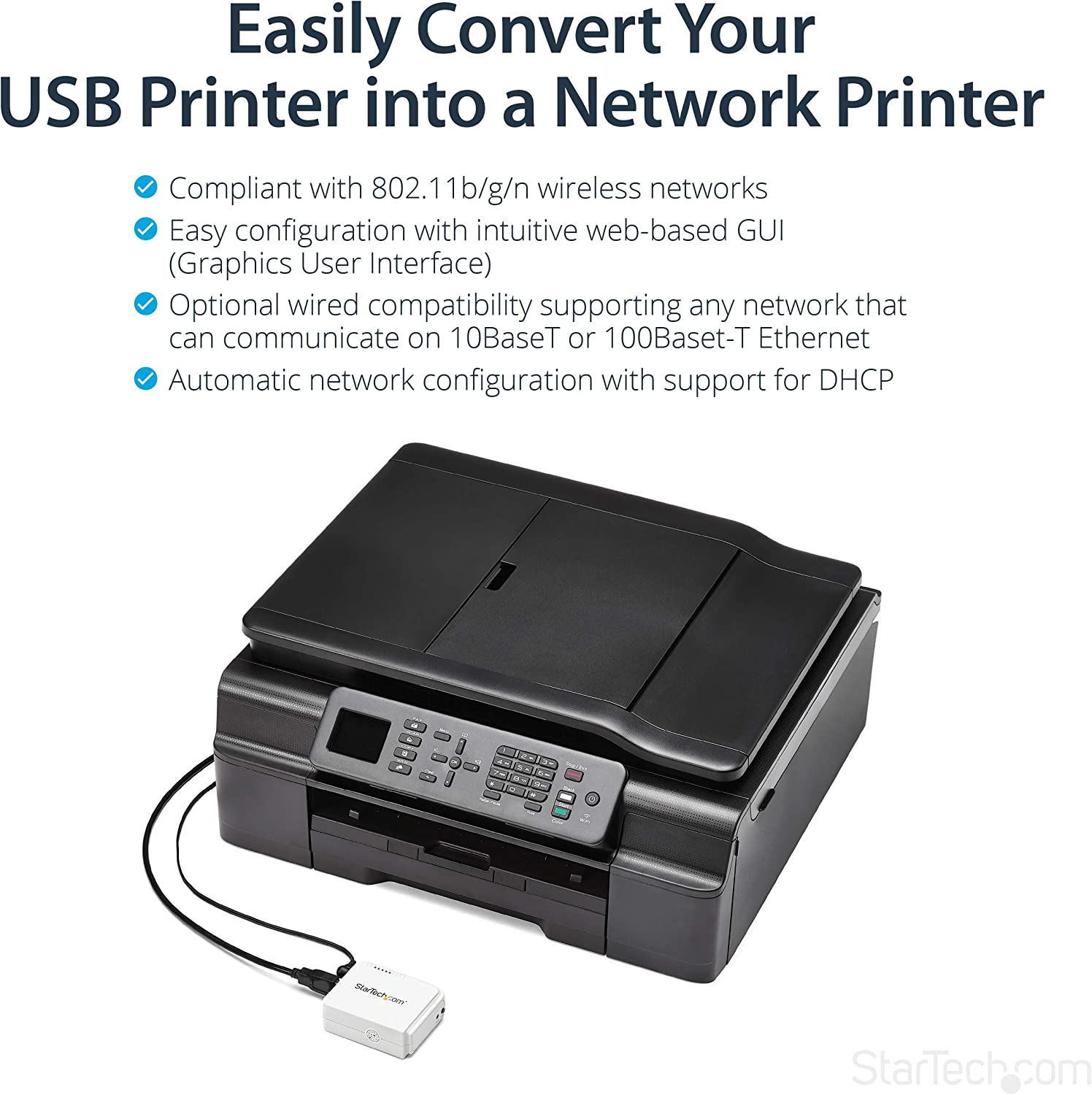 SHARE A PRINTER: Share a USB printer w/ multiple users over an Ethernet network; The print server has 10Base-T/100Base-TX auto-sensing to ensure a reliable connection, letting you print from any network computer, across the office or over the Internet