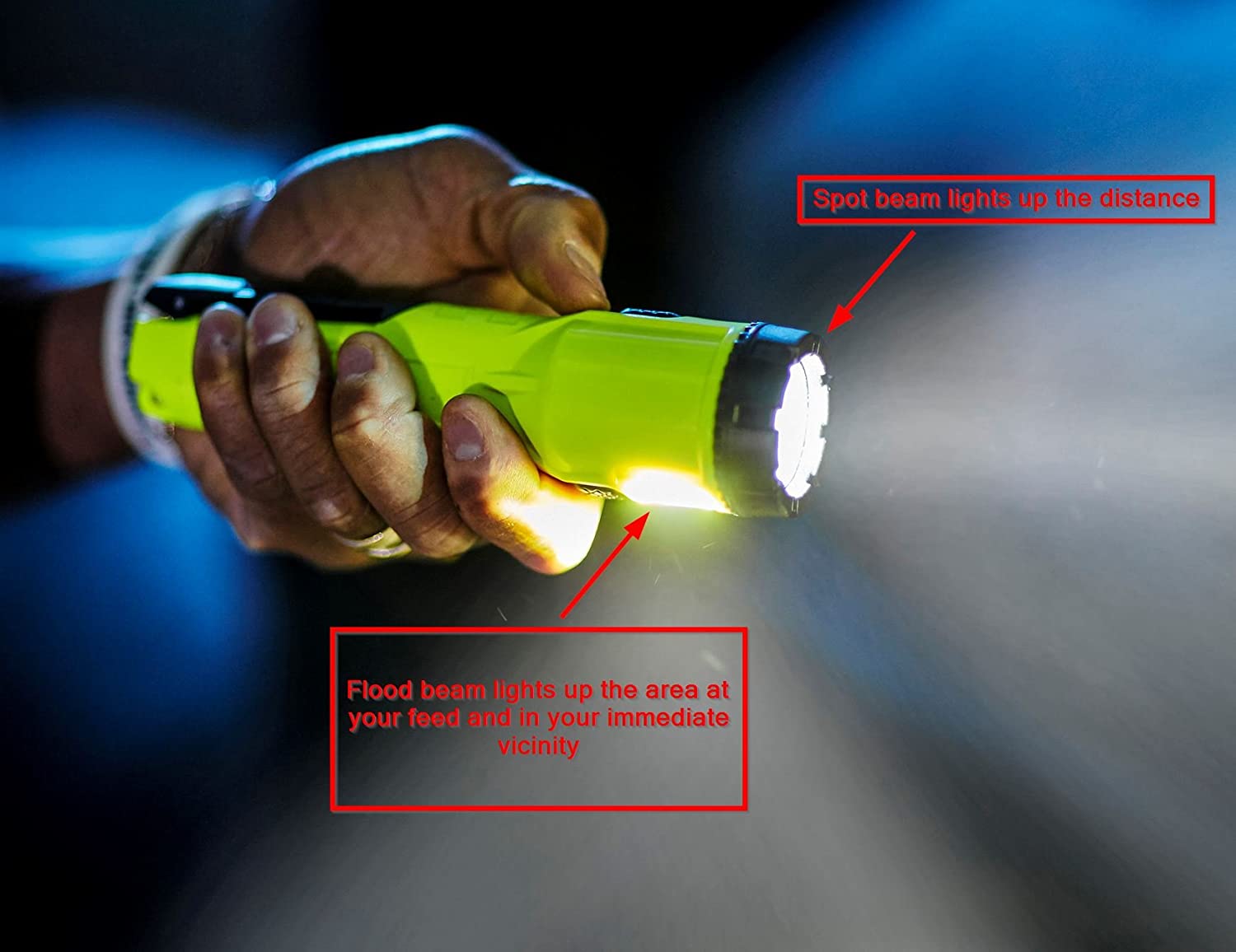 See what's ahead of you and around you with the intrinsically safe3AA ProPolymer Dualie. It produces a focused spot light and soft flood lightto illuminate your work area and help to avoid slips, trips and falls.