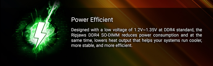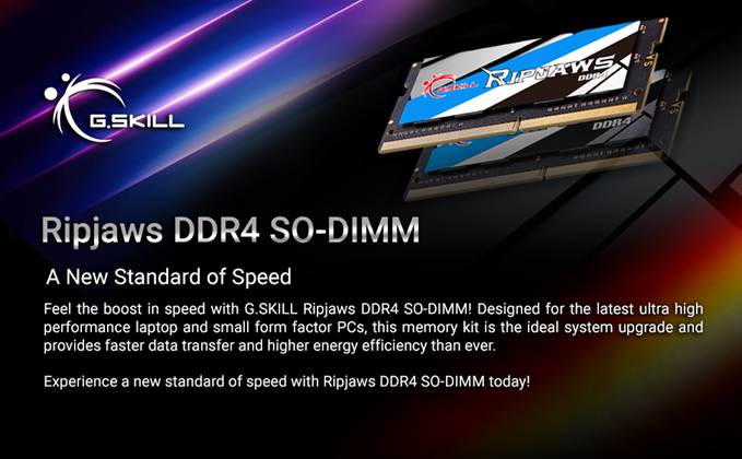 G.SKILL RipJaws DDR4 SO-DIMM kit is the ideal system upgrade and provides faster data transfer and higher energy efficiency than ever. Experience a new standard of speed with RipJaws DDR4 SO-DIMM today!