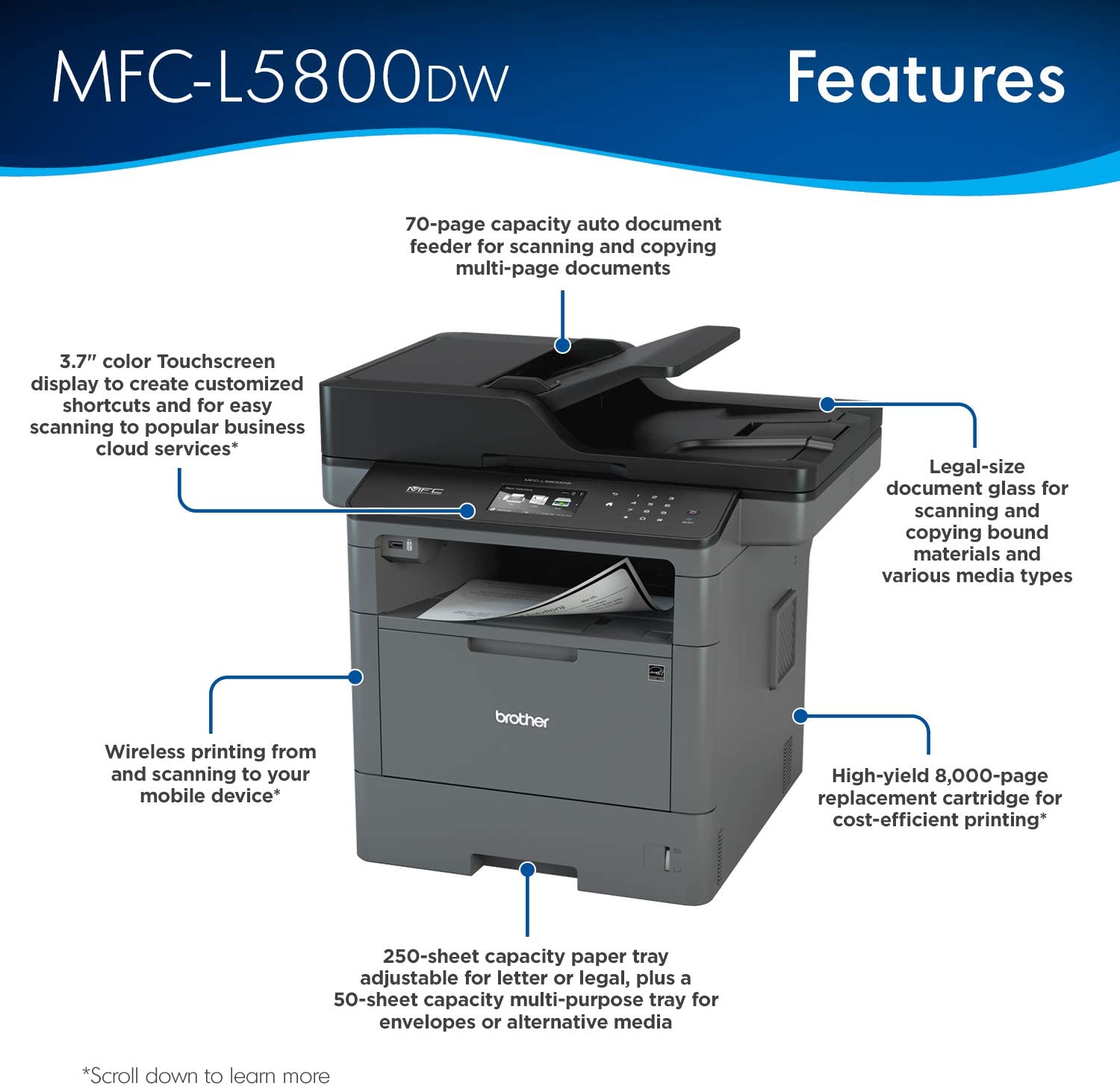 Brother Monochrome Laser Printer, Multifunction Printer, All-in-One Printer, MFC-L5800DW, Wireless Networking, Mobile Printing & Scanning, Duplex Printing, Amazon Dash Replenishment Ready