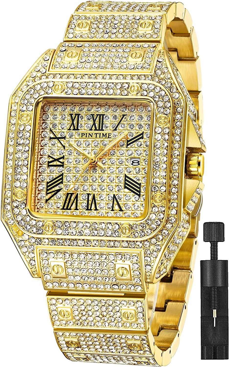Hip Hop fashion watch for men:The dial filled with ravishing crystals,designed to flash when exposed to light, ?Making you shine like a star! Worn by all who love bling.