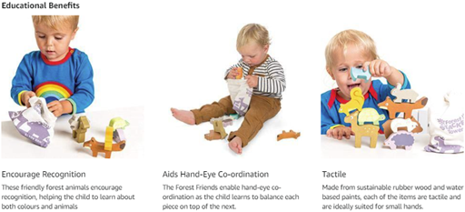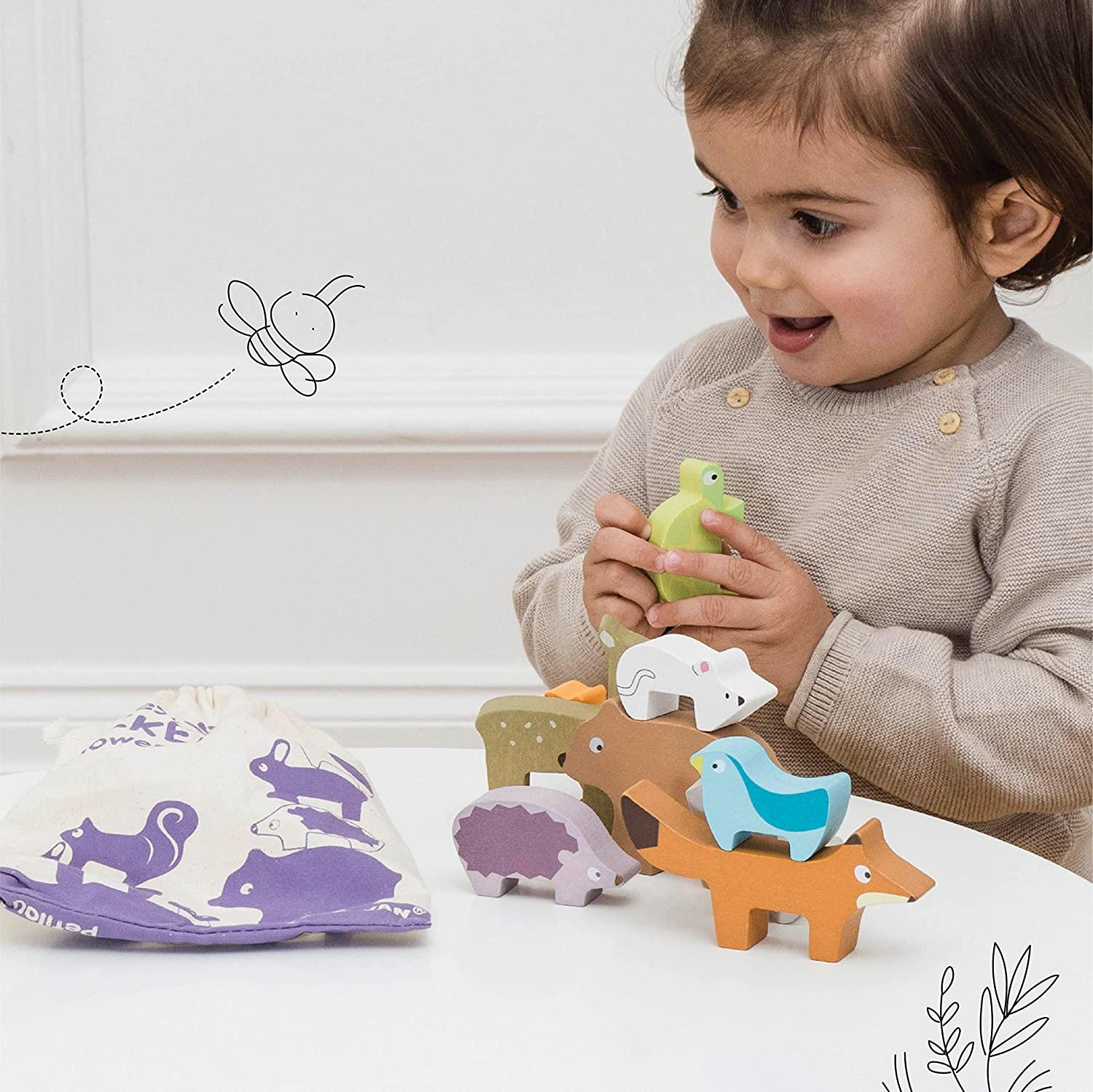 Kids love the Wooden Petilou Forest Stacker & Bag Educational Balancing Activity Toy from Le Toy Van!Our toys are designed to play to developing senses and are packed with layers of discovery for young, growing imaginations. The safety of your child is our number one priority. We rigorously test and regularly exceed toy safety standards. We only ever use safe, non-toxic paint and work hard – from design to manufacture – to ensure kid safe edges on our toys, for safe play every day.Features:Hand painted, Suitable for toddlers and older children 12 months+, Made from durable, sustainable rubberwood, this allows long lasting fun, whilst caring for our planet. Contains: 9 wooden animals, Drawstring bag. Le Toy Van has been proudly making imaginative wooden toys designed in London since 1955. Including local kids in their toy designing process and working with trusted suppliers for over 25 years, supporting them in ethical work practices. All Le Toy Van multi-awarding winning toys are ethically made from sustainable, tactile Rubberwood and are uniquely designed and hand-finished.We care for our planet and believe wood is good! We use and replant a by-product of the rubber industry - Rubberwood, which used amongst over woods is recycled into our beautifully crafted toys.