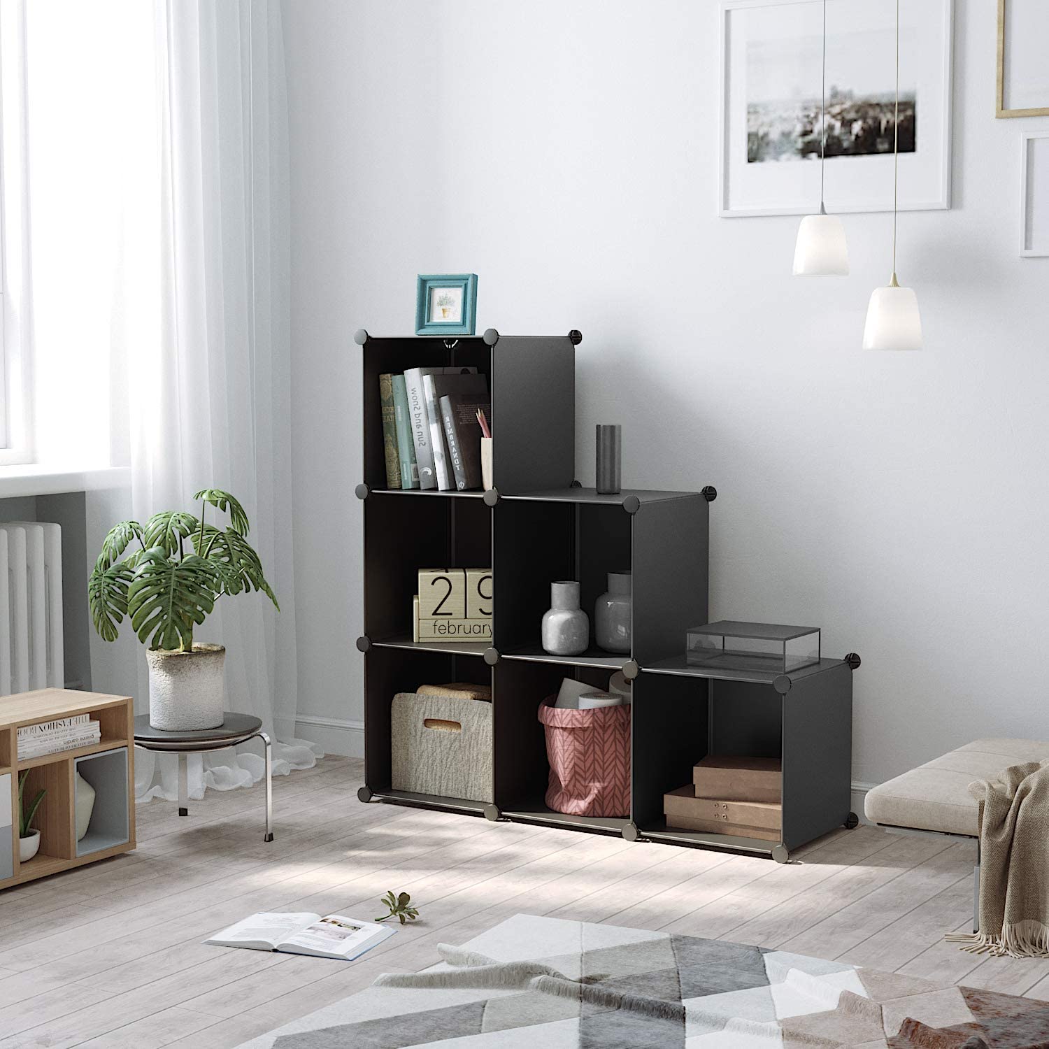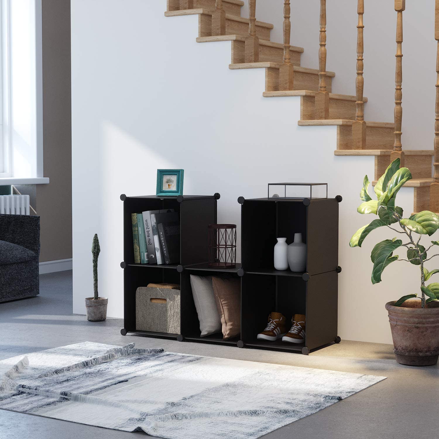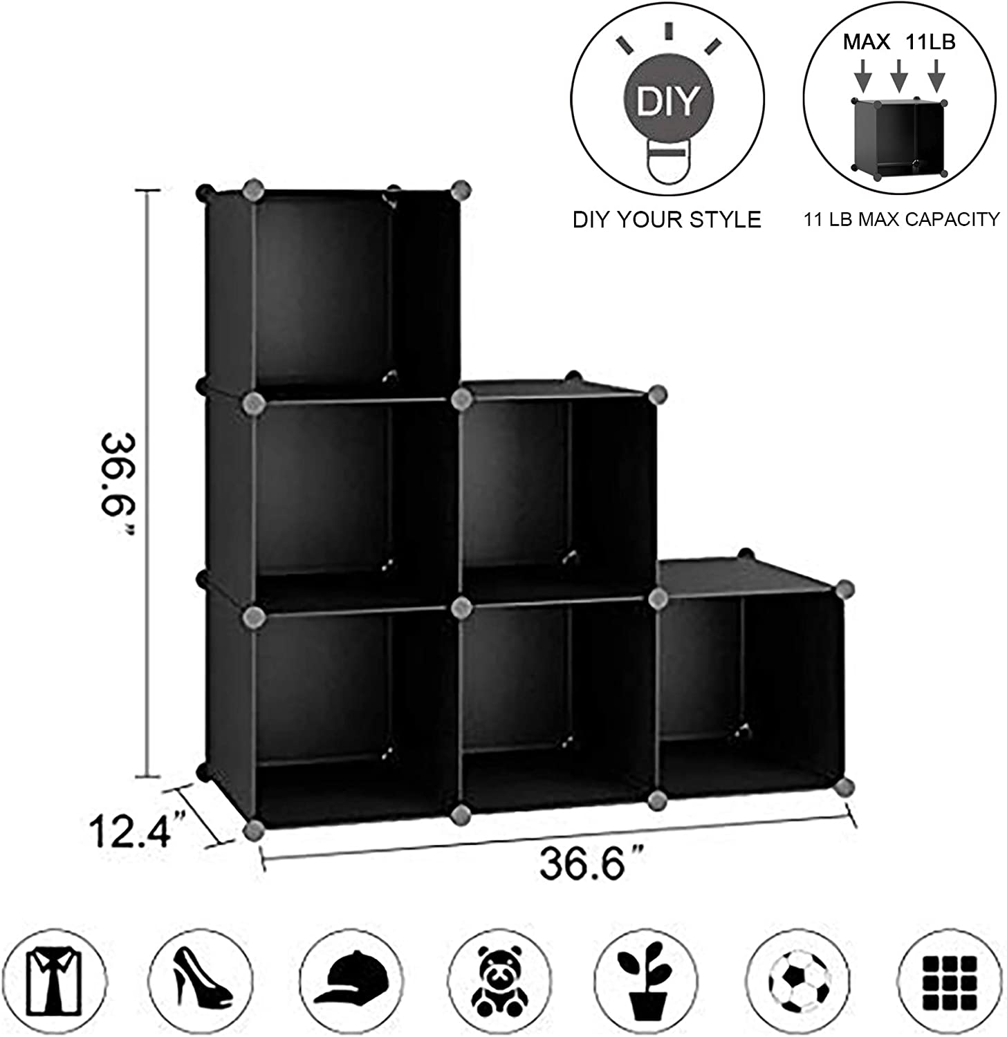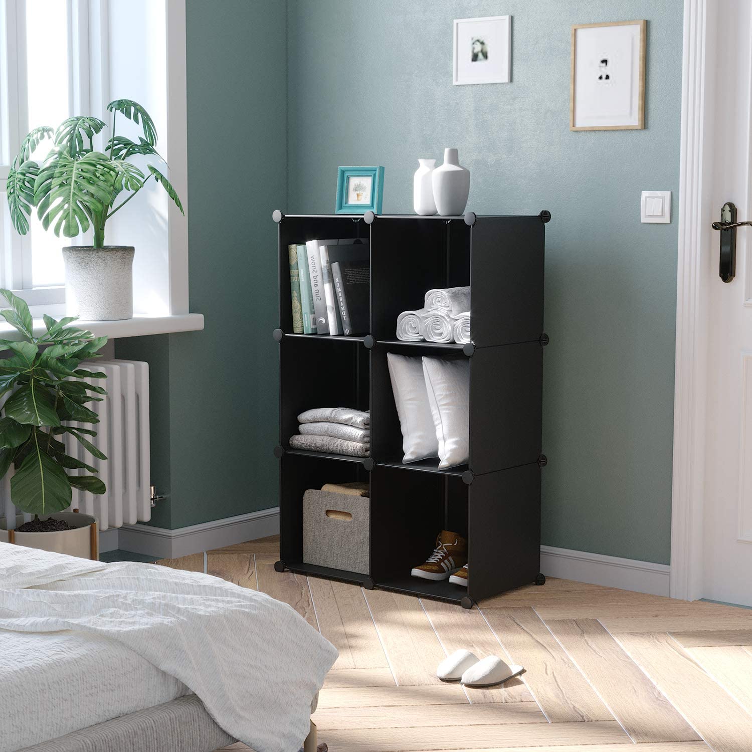 C&AHOME Cube Storage Organizer, 6-Cube Shelves Units, Closet Cabinet, DIY Plastic Modular Book Shelf, Ideal for Bedroom, Living Room, Office, 36.6" L x 12.4" W x 36.6" H Black