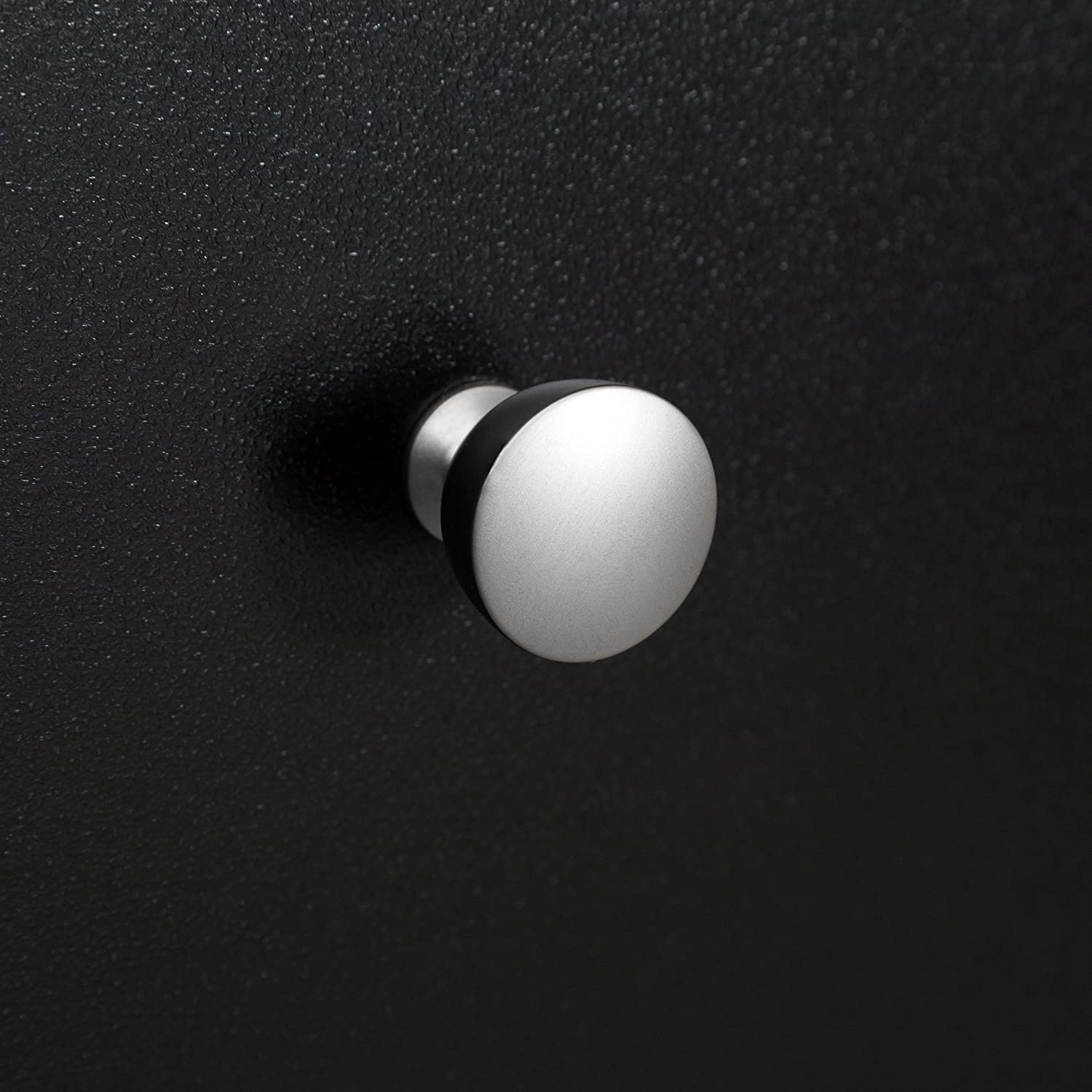 ADJUSTABLE DESIGN: The minimalist cabinet features 2 storage spaces separated by an adjustable shelf which is all neatly concealed behind 2 sleek doors with metal knobs.