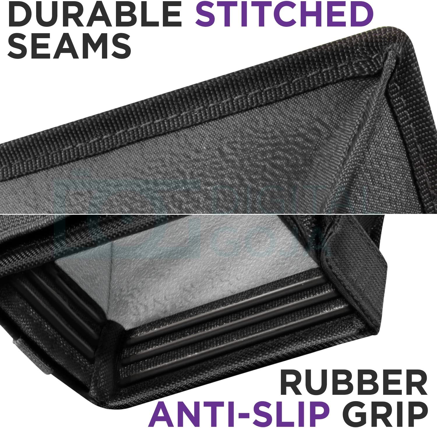 SIMPLE AND COMPACT: Integrated hook and loop fastener strap secures around the flash head. Folds down flat when not in use.