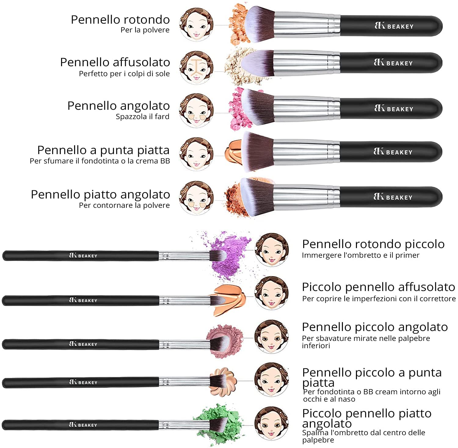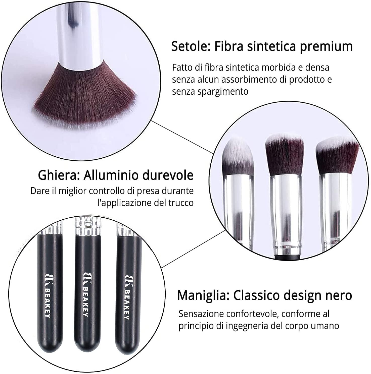 BEAKEY Makeup Brushes 12Pcs Makeup Kit, Premium Synthetic Kabuki Foundation Face Powder Concealers Blush Eyeshadow Brushes Makeup Brush Set, with 2pcs Blender Sponges (Black/Silver,12 Piece Set)