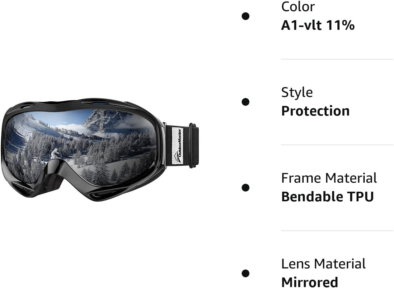 OutdoorMaster Ski Goggles OTG - Over Glasses Ski/Snowboard Goggles for Men, Women & Youth - 100% UV Protection