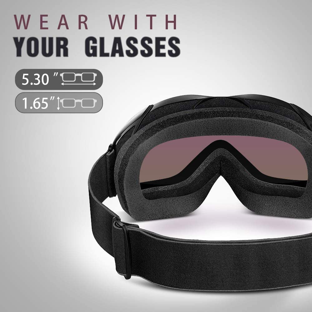 OTG (OVER-THE-GLASSES) DESIGN - Ski goggles that fits over glasses. Suitable for both ADULTS AND YOUTH.