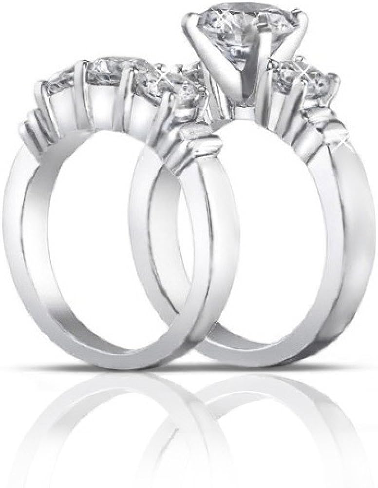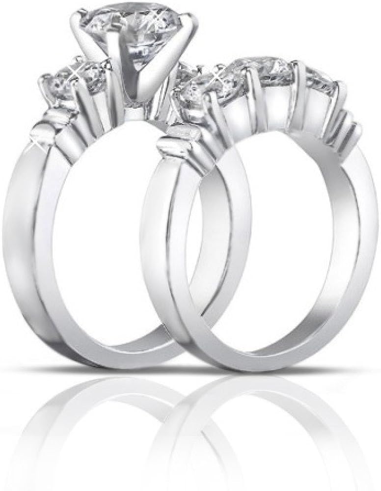 Madina Jewelry 2.00 ct Women's Round Cut Diamond Engagement Ring with Wedding Band Set in 14 kt White Gold