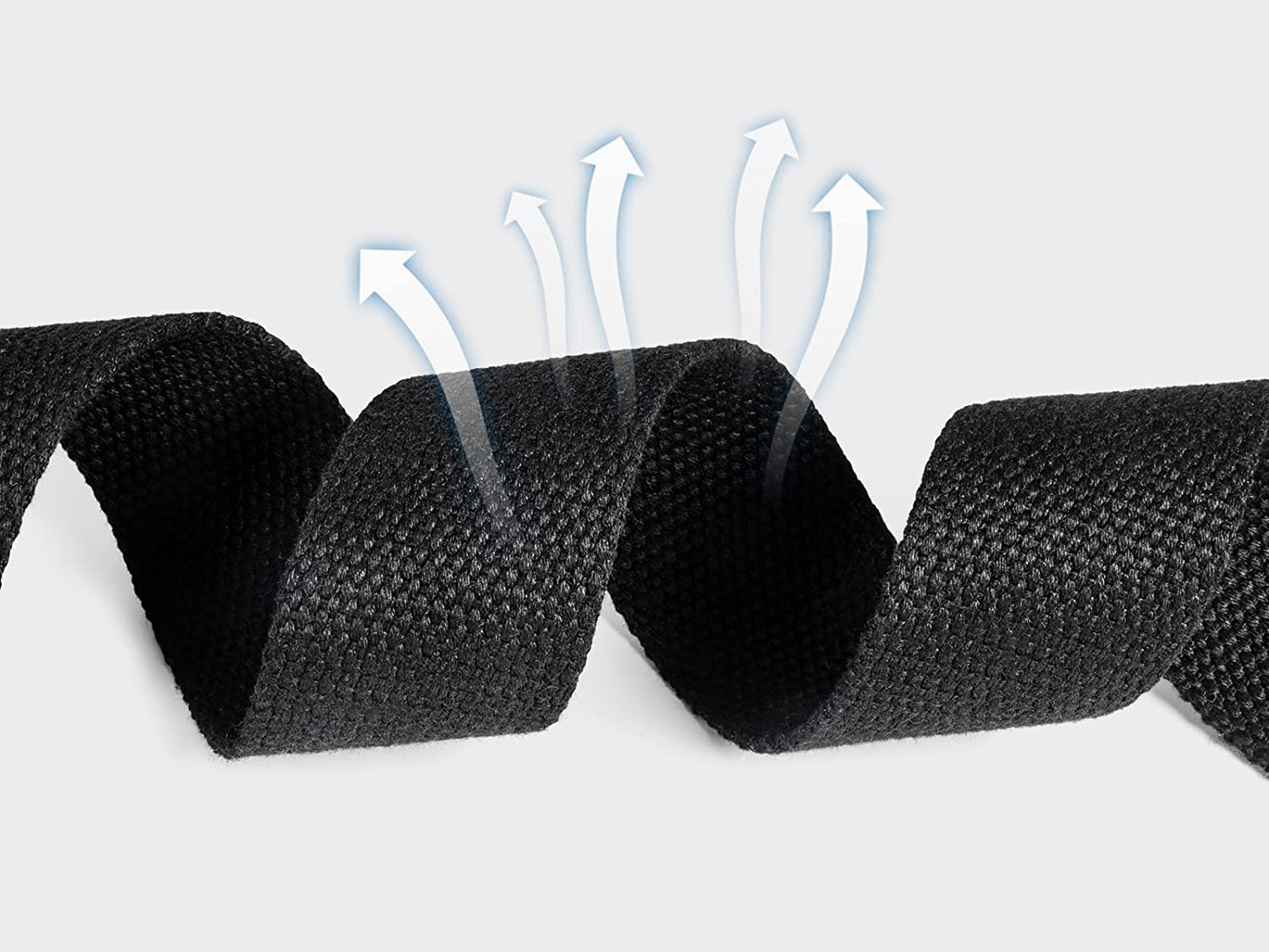 Army green anvas cweb waistband featured with black double D-rings sewn to belt, 0.2" diameter D-ring, stronger than thin buckles