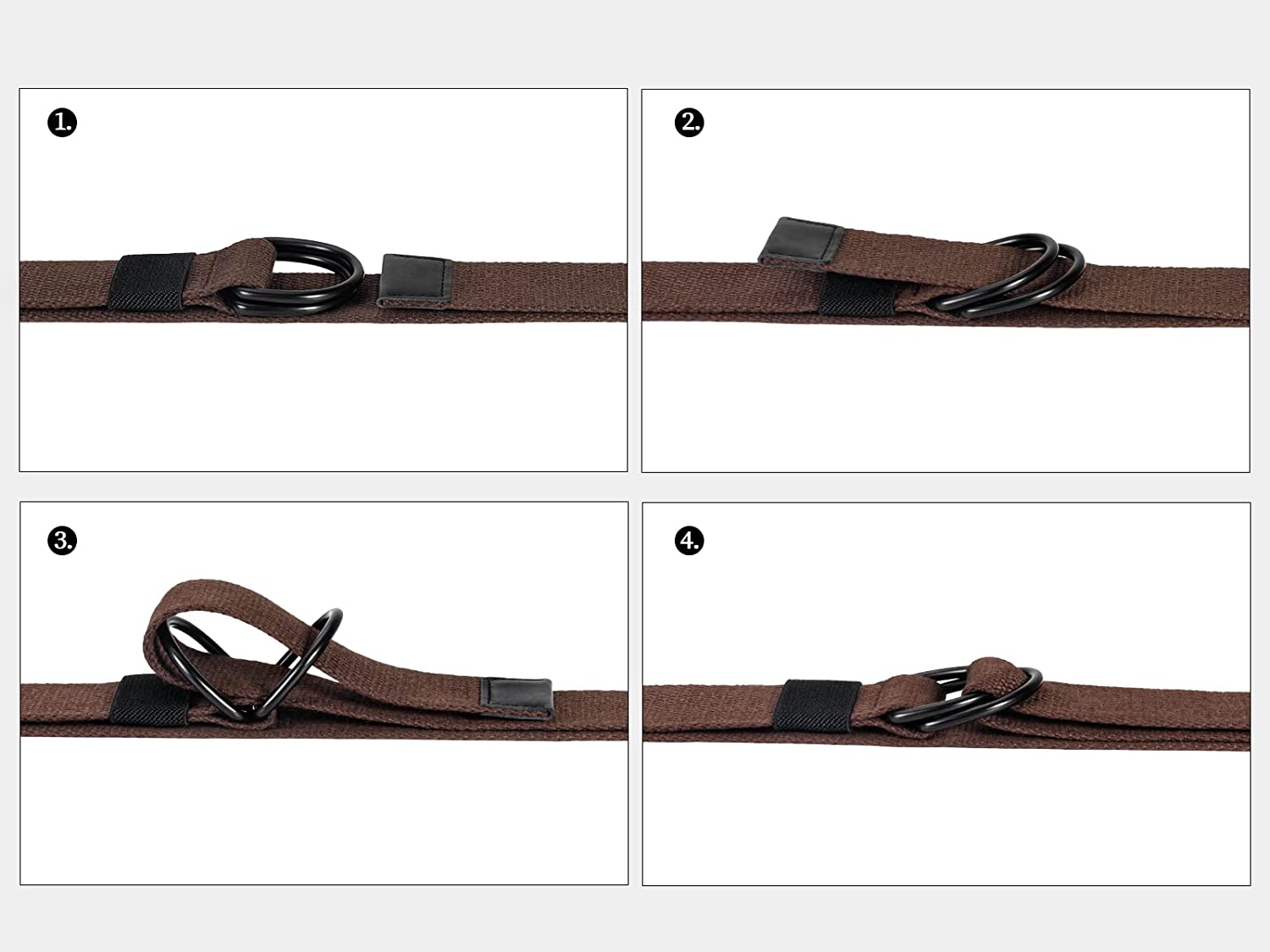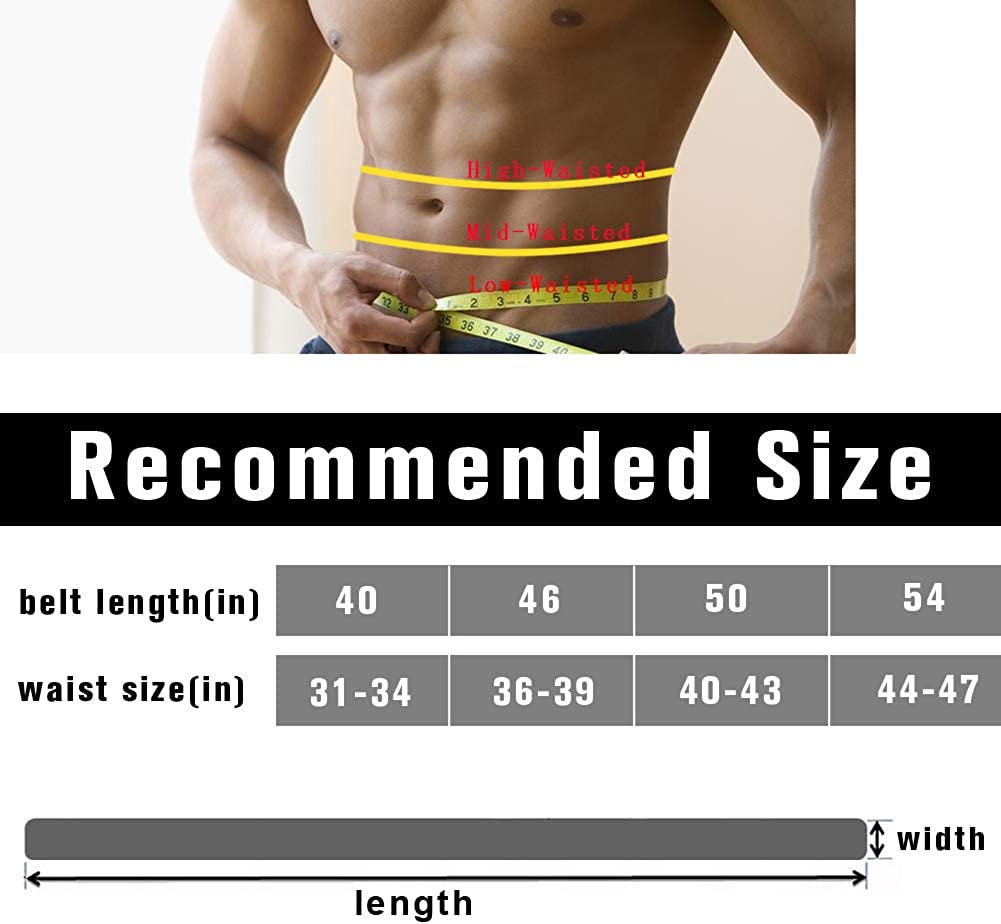 Size: Tip to tip length ranges from 42"-54", Width:1 1/2". No holes belt strap with D-ring buckle design, which can be easily adjusted to the length most suitable for your waist.