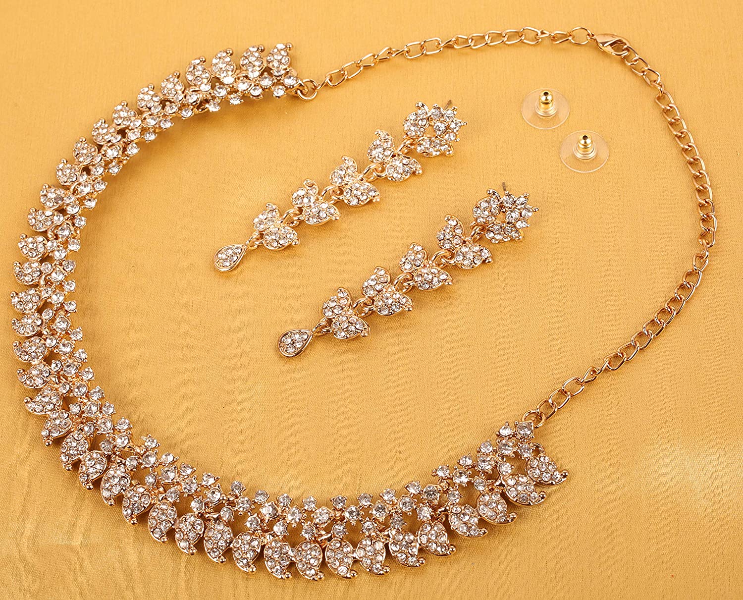 Touchstone Hollywood Glamour white crystals paisley motif grand jewelry necklace in antique tone for women EXTRA LONG EARRINGS. Length 3 inches SPECIFICATIONS : Necklace Circumference : 13 Inches. Extendable Adjustable With Extra Links/Chain Up To 18 Inches. Earrings Weight (Single) 7 gms. Earrings Length 3 Inches. Earrings Width 0.50 Inch.