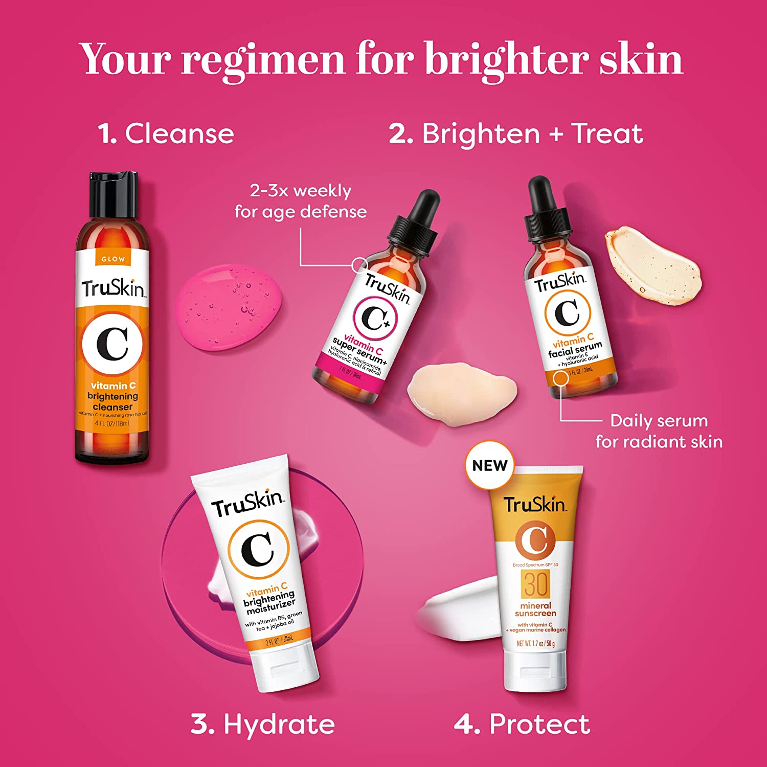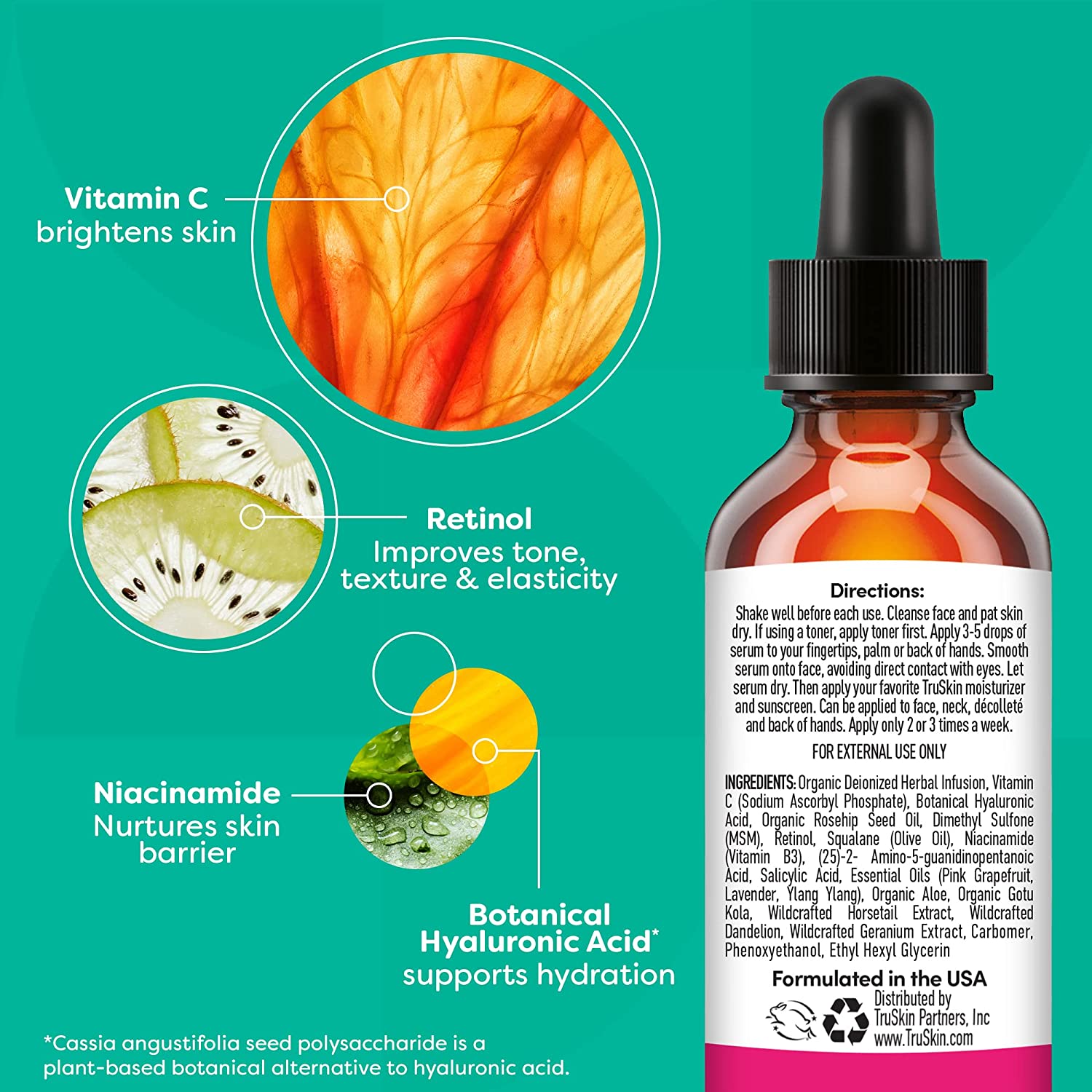 TruSkin Vitamin C-Plus Super Serum, Anti Aging Anti-Wrinkle Facial Serum with Niacinamide, Retinol, Hyaluronic Acid, and Salicylic Acid, 1 oz