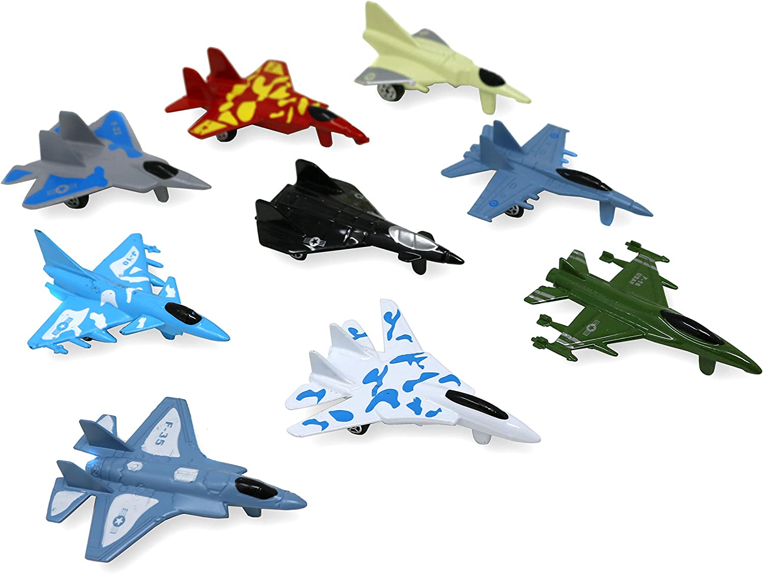 Metal die cast Toy air Plane Set of Military Planes and Jets. Pack of 9.